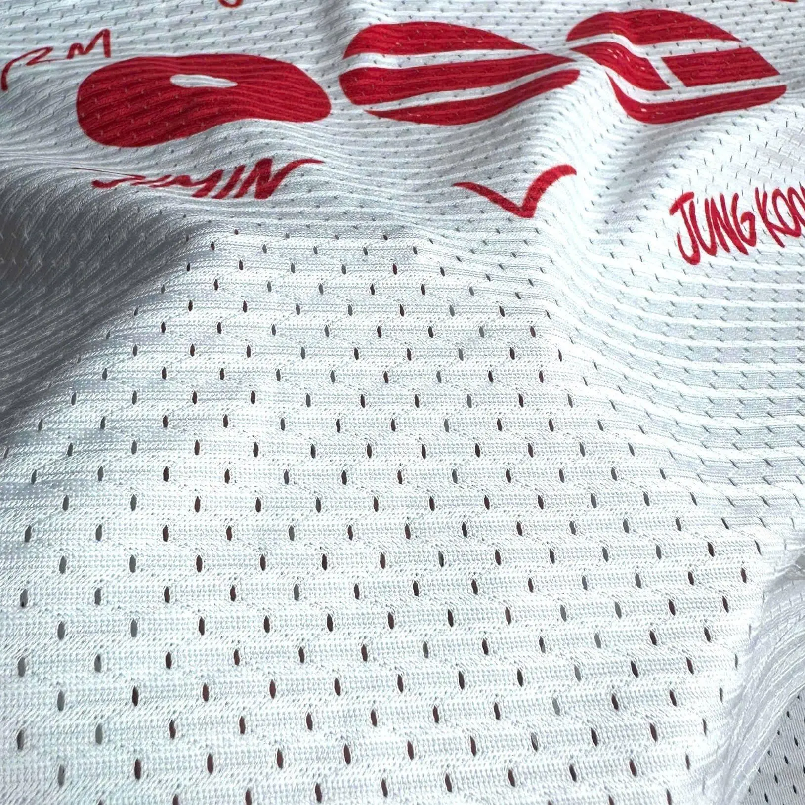 Sports mesh fabric – lightweight, breathable, soft, moisture-wicking, and wrinkle-resistant. Keeps wearers dry and cool even in warm, high-intensity conditions — perfect for training or playoff season.