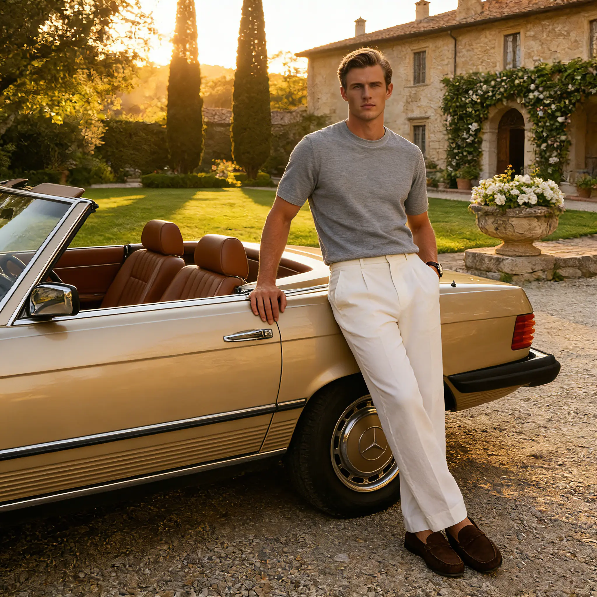 LazyRoad Men's Silk Wool Blend Basic T-Shirt crafted with 41.6% Polyester, 32.4% Acrylic, 20.3% Nylon, 3% Silk and 2.7% Wool. Features ultra-soft, anti-wrinkle fabric with a premium touch, perfect for everyday wear and layering. Timeless relaxed fit in three neutral shades, embodying old money quiet luxury.