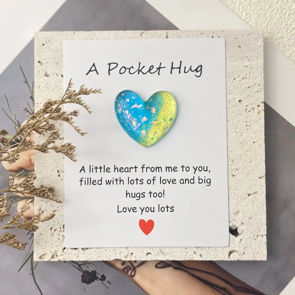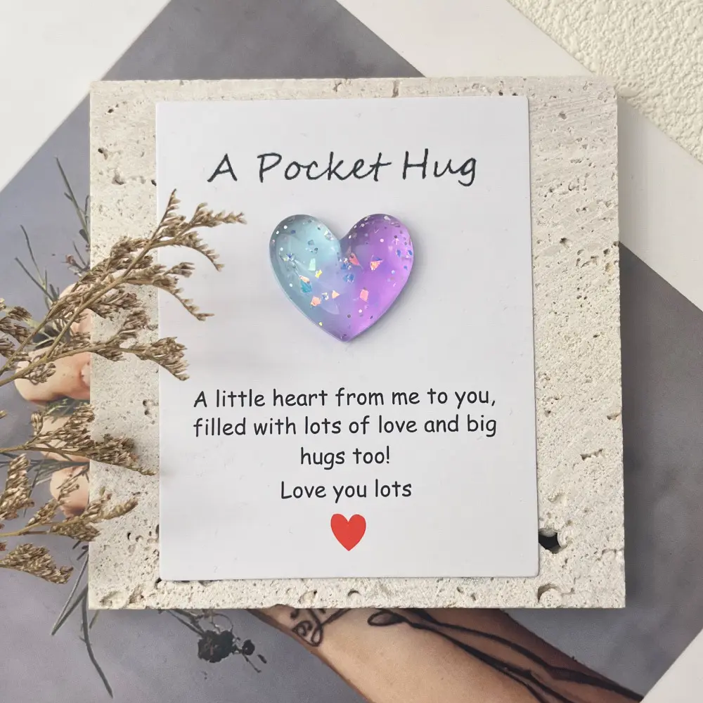 A small but meaningful token of love, this gradient resin heart "Pocket Hug" card is included as a free gift with your purchase.It is not sold separately.Featuring a mini decorative resin heart attached to a heartfelt message card, it’s a sweet symbol of love, encouragement, and appreciation.