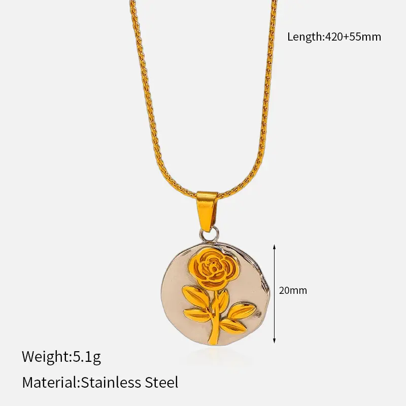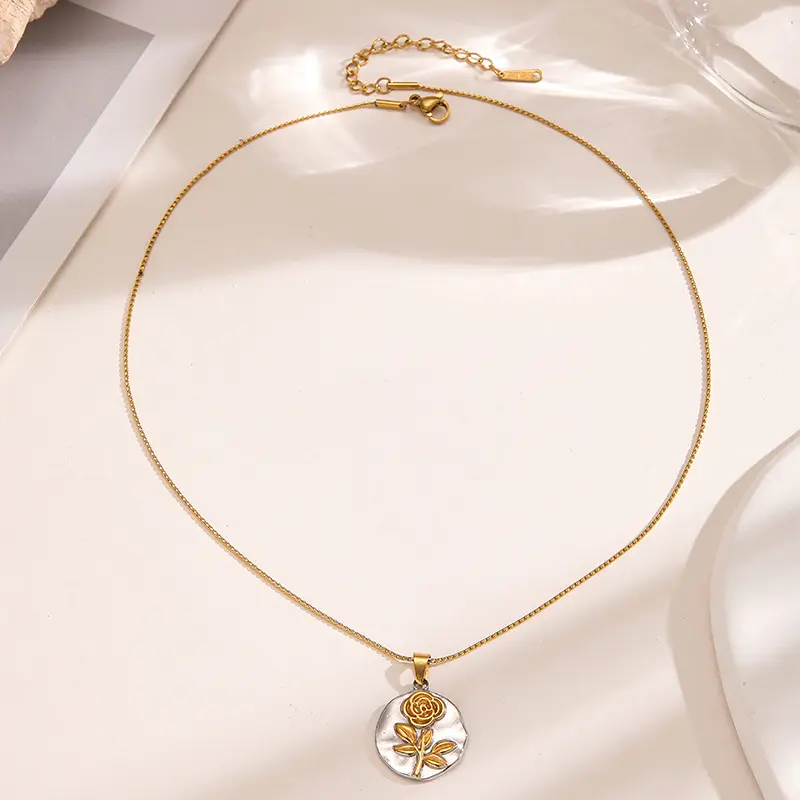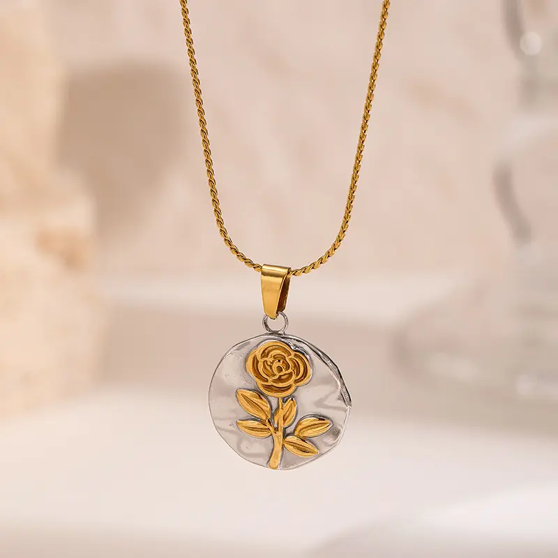 Two-tone rose flower necklace for women, high-end luxury pendant, stainless steel pleated flower collarbone chain, jewelry that is not prone to fading