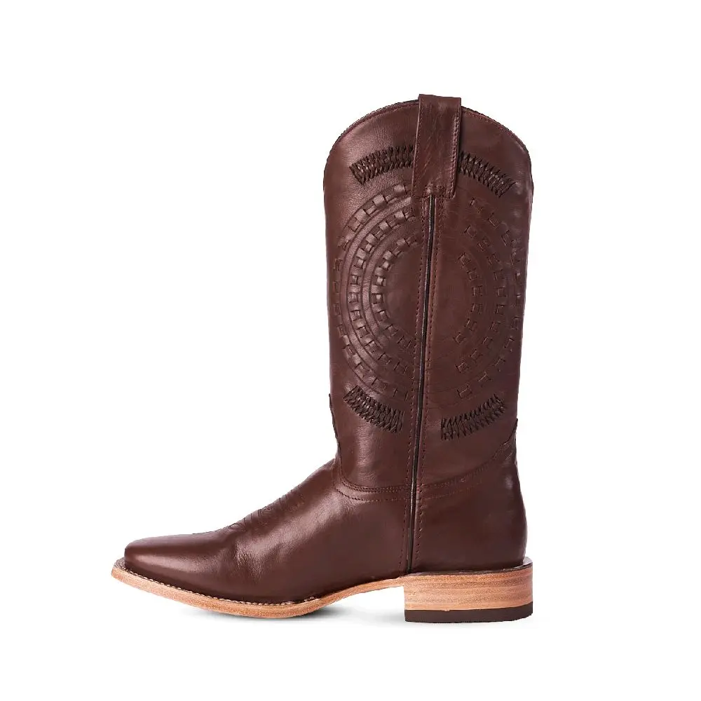 The Tejido Roma boot in brown color features a textured finish that adds a distinctive and modern western look. Its versatile design allows easy pairing with both casual and more formal outfits.