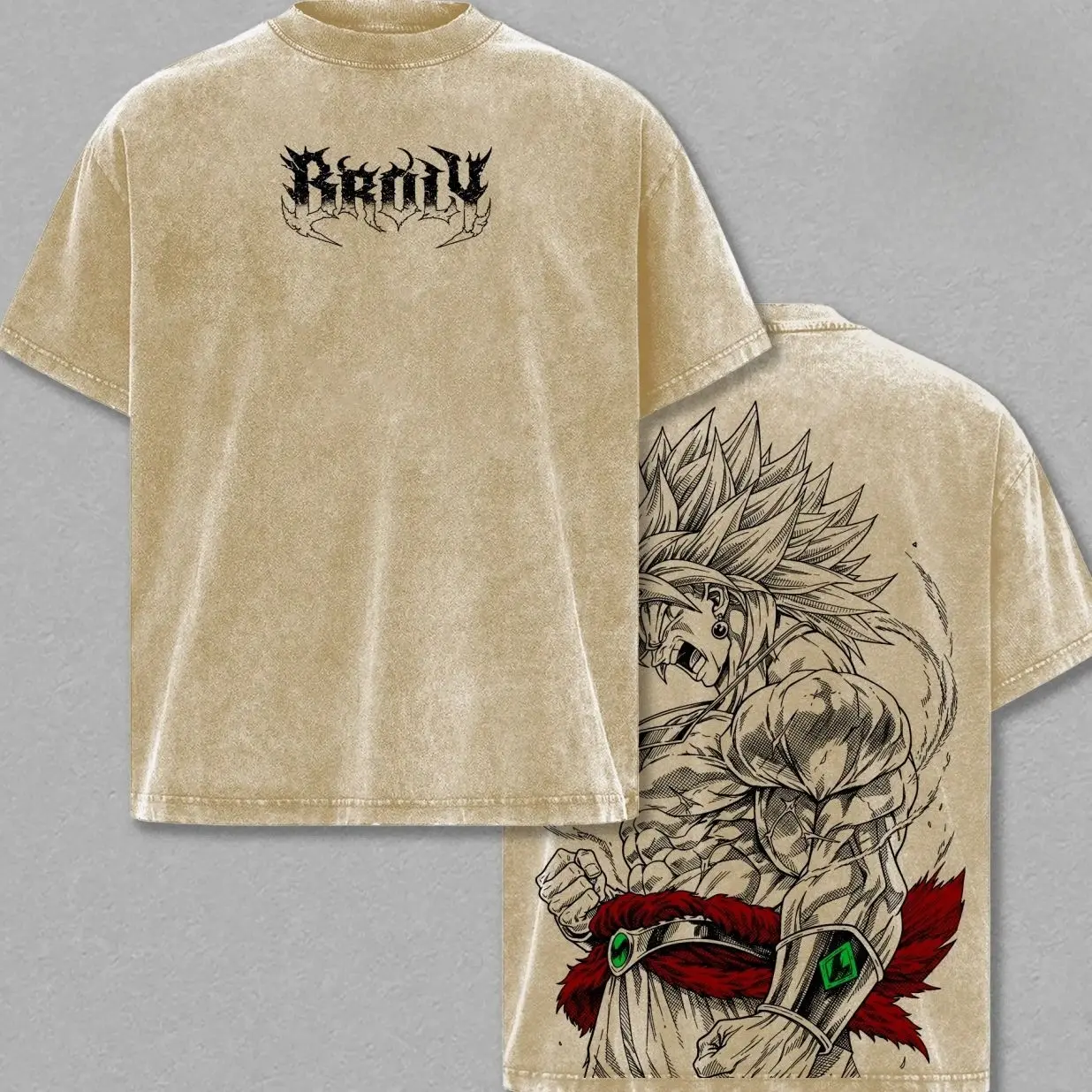 Broly The Legendary Vintage Washed Oversized Graphic Tee, DBZ Double Printed T-Shirt, Heavyweight Cotton Unisex Streetwear Top, Gym Pump Cover, Gift for Anime Fans wind breaker XT2