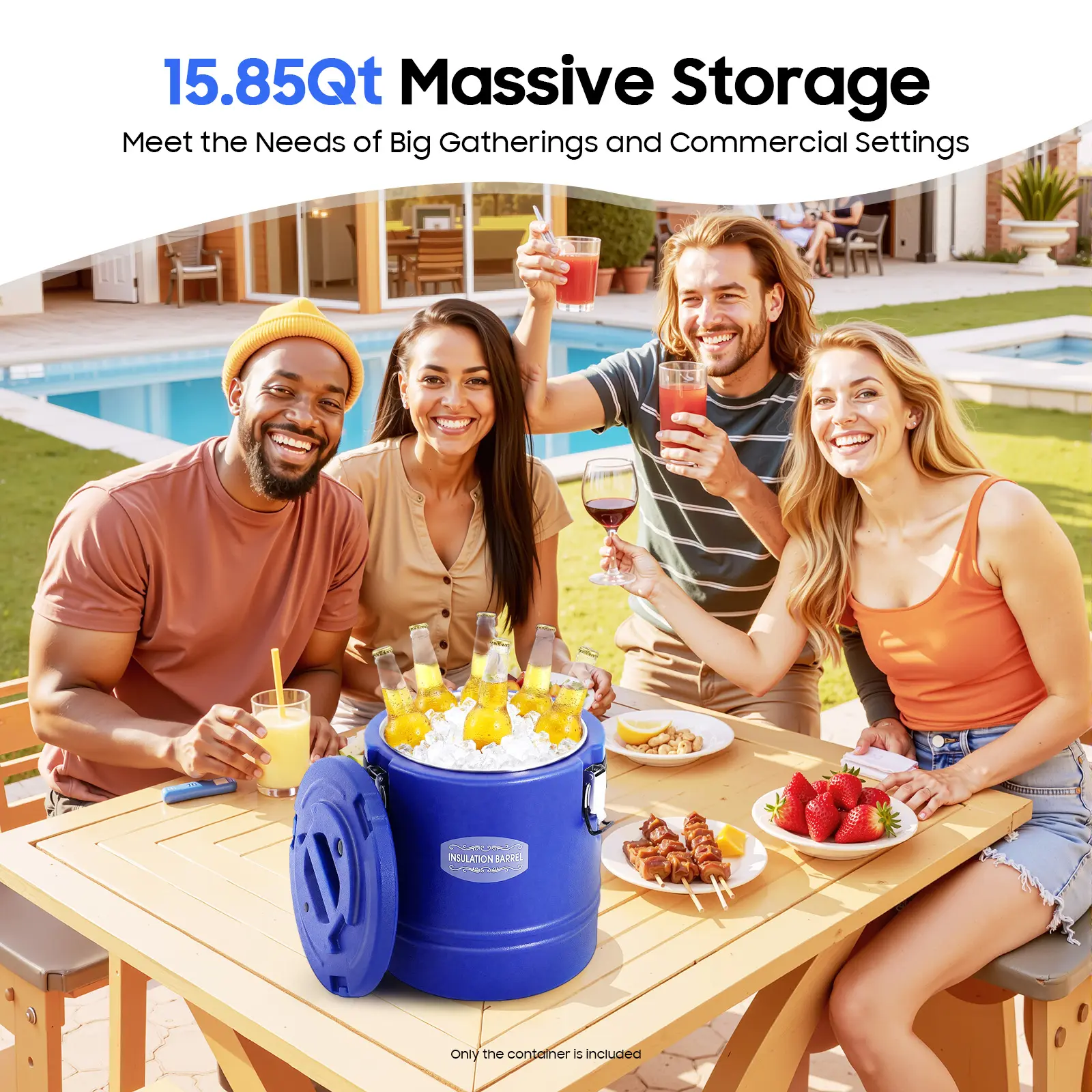 Large Capacity: The large capacity of 15.85Qt can accommodate a large amount of food or beverages(not included), suitable for family gatherings, picnics, outdoor activities, or commercial purposes, meeting the needs of different occasions.