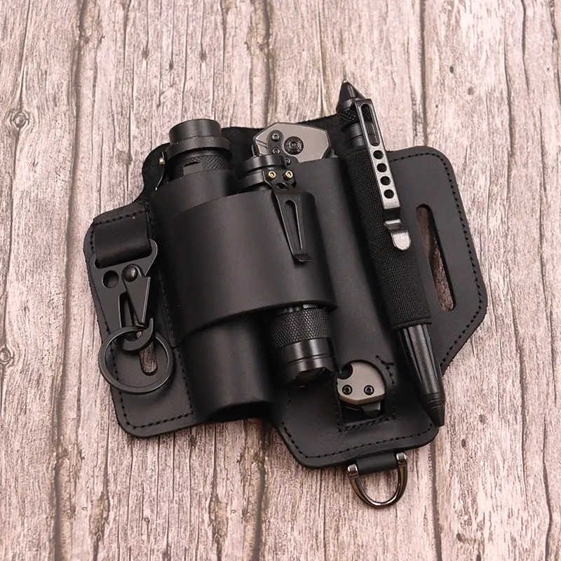 Multi Tool Belt Leather Bag Portable Tool Storage bags Key Holder Outdoor Camping Hunting Waist Leather Pocket
