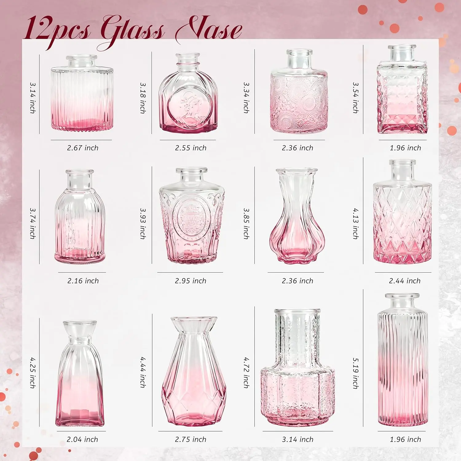 ·Vintage Style: You will receive 12 vintage-style glass pink vases that are exquisite and elegant. They can become the beautiful focal point of your windowsill, dining table, or wedding decor