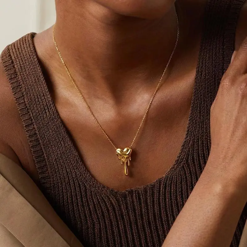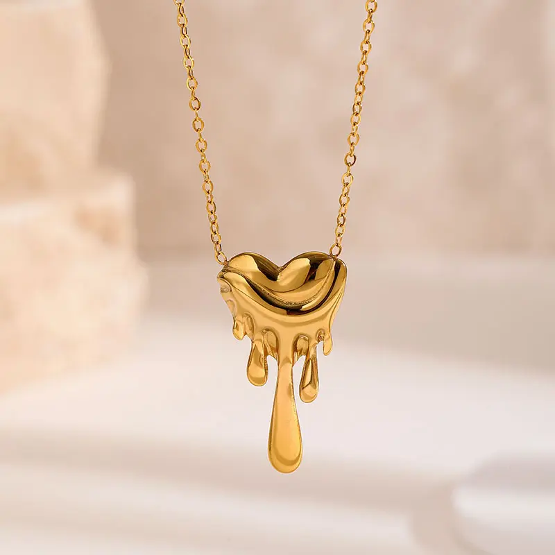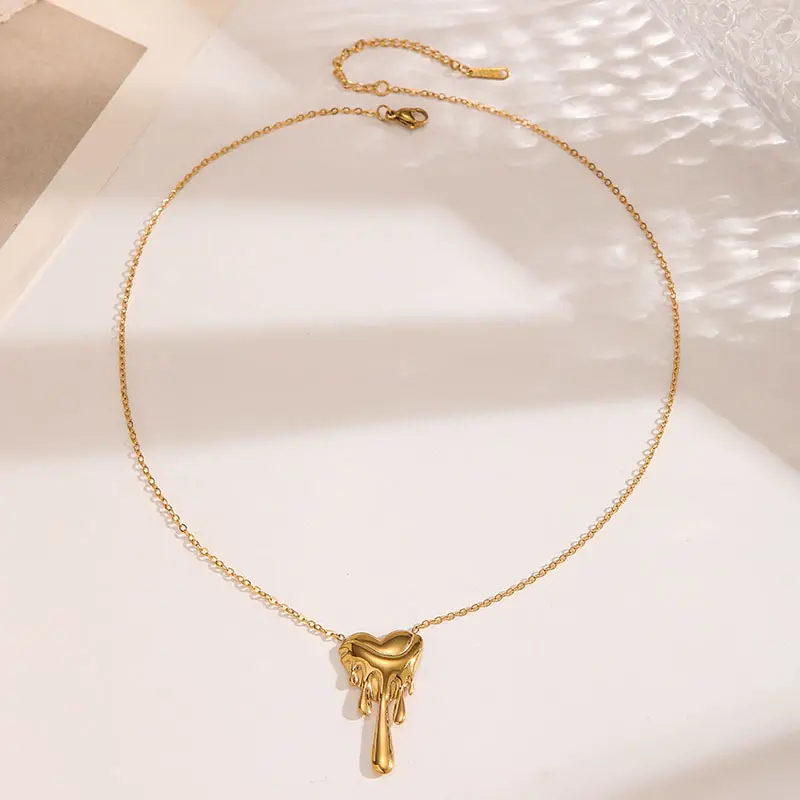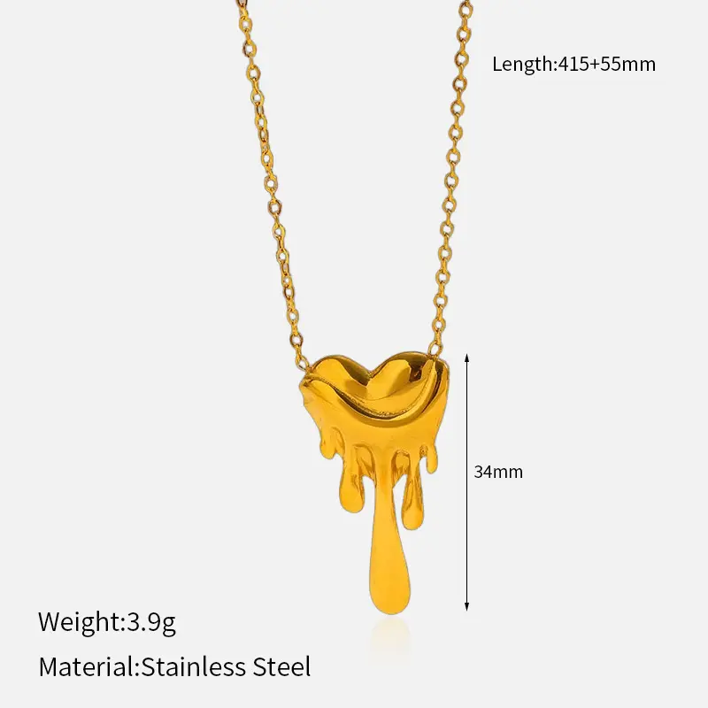 Lava Heart Necklace for Women, Simple and Elegant, Light Luxury Pendant, Stainless Steel, Minimalist Style, Melting Geometric Necklace