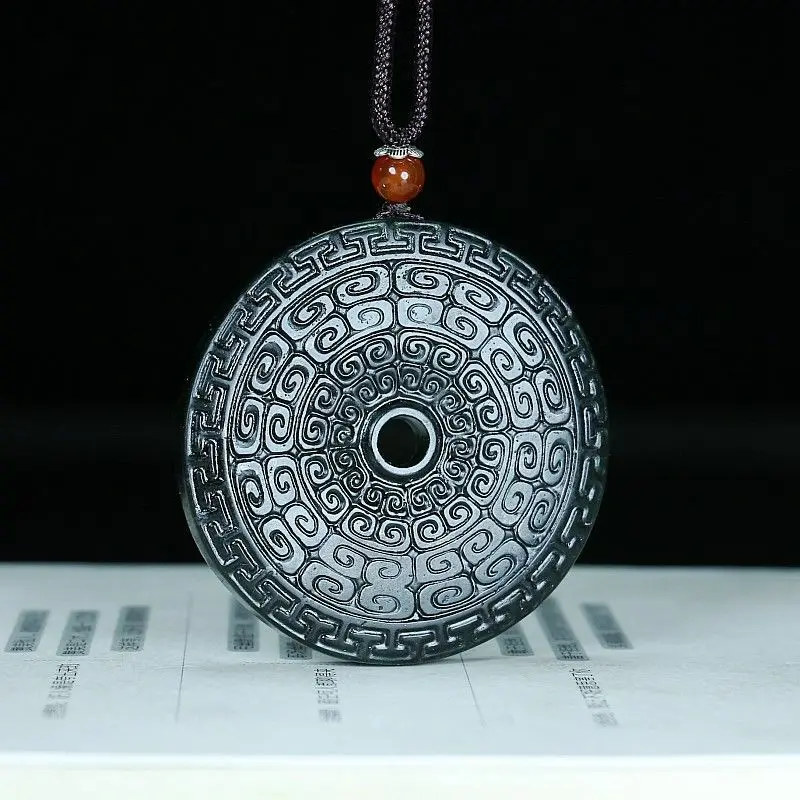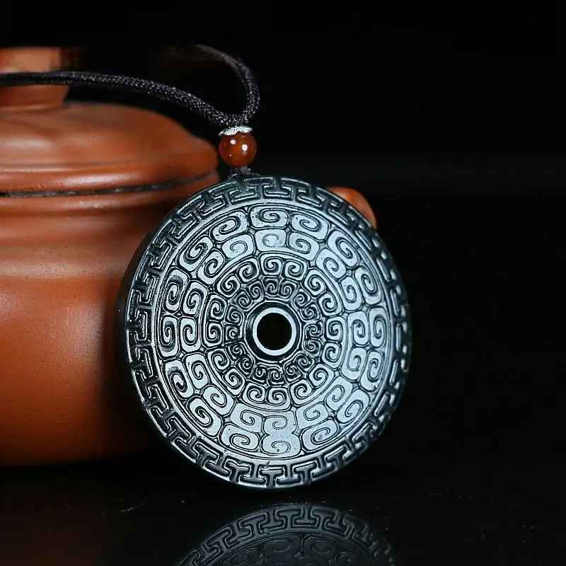 ·This Serpentine Lantian Black Jade Peace Buckle is crafted from natural jade. It features an archaized He Shi Bi design, adding a unique touch. The double-sided pendant ensures versatility in wear.