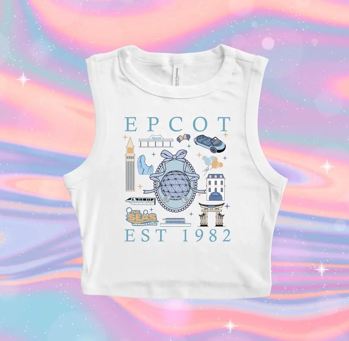 "Epcot Bow Crop Tank, Spaceship Earth Ratatouille Baby Tee, 1982 Monorail Crop Tank, Cute Tomorrow Land Tee, Est 1982 Bows Girlie"