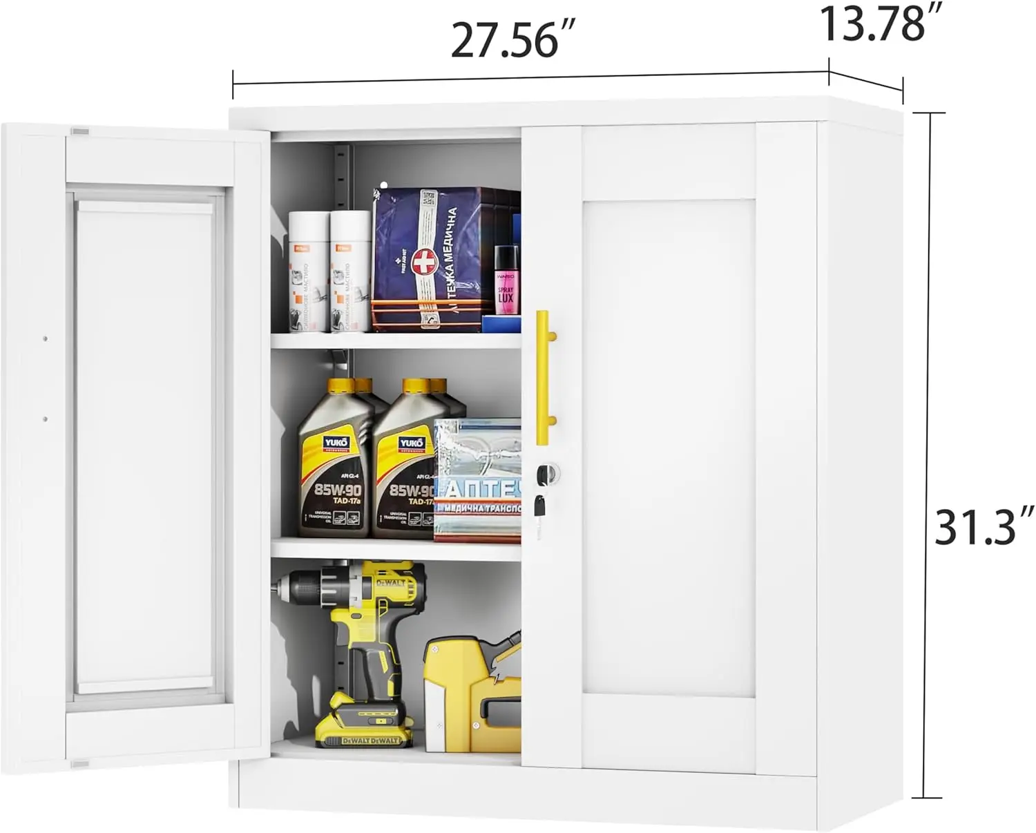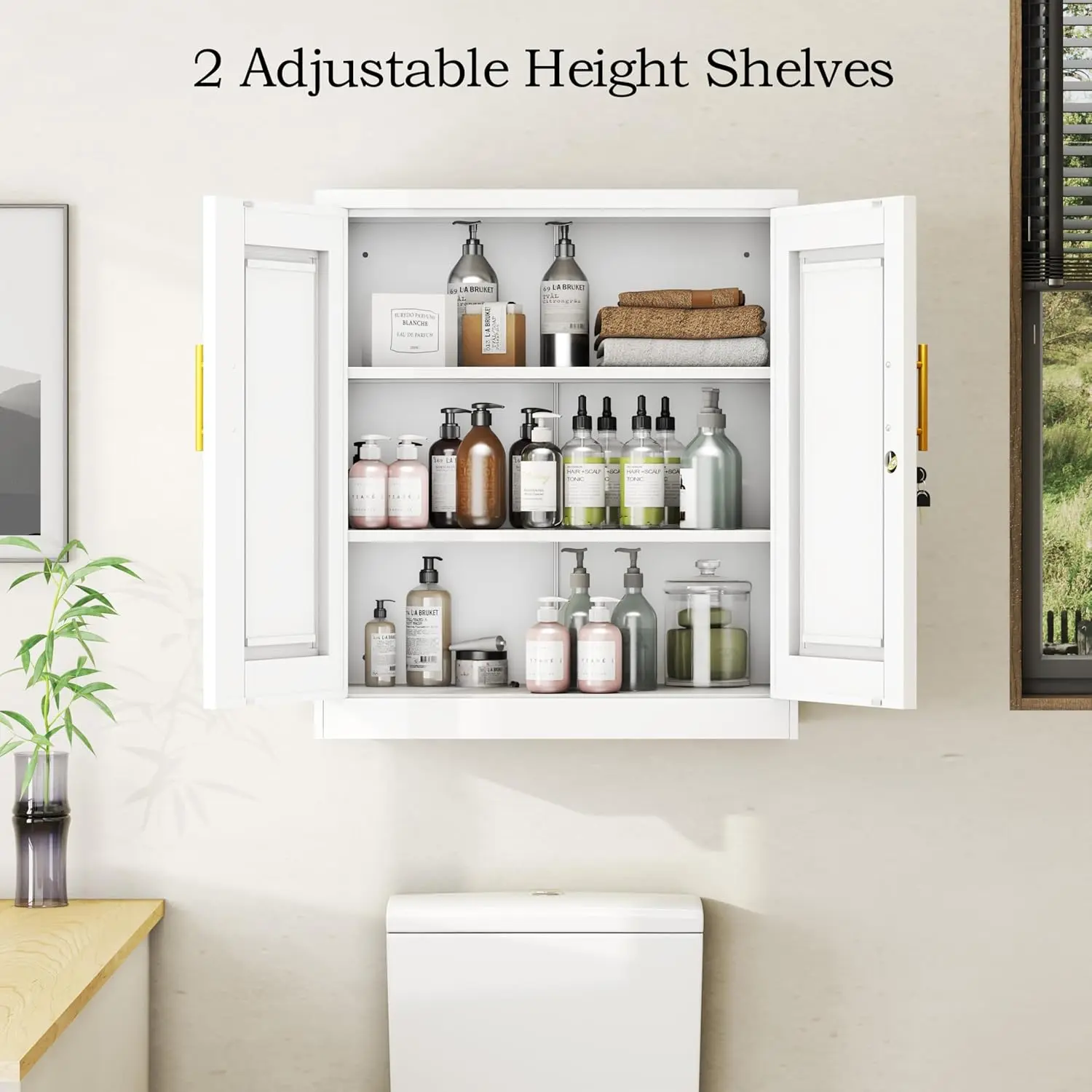 This compact cabinet is perfect for small spaces. It features 2 doors and adjustable shelves, offering versatile storage. Ideal for over toilet or kitchen use, it resists moisture, ensuring durability. The design maximizes space efficiency without compromising functionality.