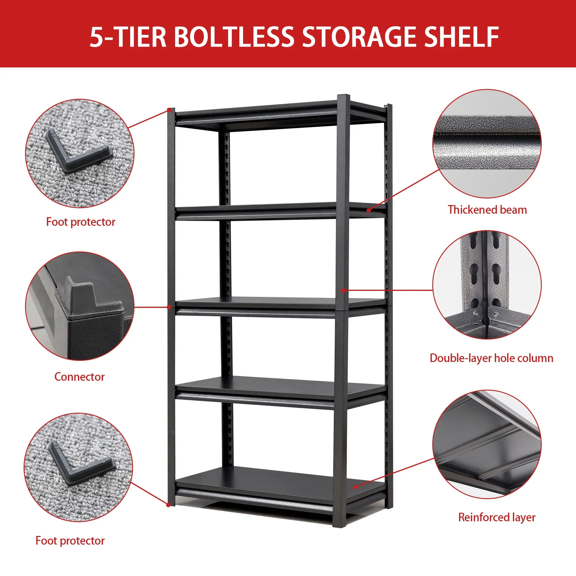 USA Warehouse Sends to Customer Garage Steel 5 Layer Home Steel Boltless Garage Storage Rack Shelves Racks Warehouse Racking