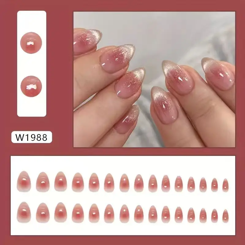 Cat-Eye Pink Nude Almond Nails| Short Press-On DIY Kit| Magnetic Gradient False Nails| Daily Wear Beauty Set