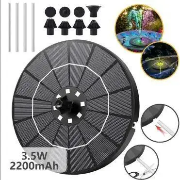 Solar Fountain Overview The Solar Fountain is a solar-powered bird bath fountain pump . It includes a 1.5W solar panel kit and a water pump. Perfect for outdoor use, this submersible pump is ideal for ponds, pools, gardens, and fish tanks. Key Features Solar Powered: Uses solar energy for operation. 1.5W Solar Panel Kit: Includes a 1.5W solar panel for power. Outdoor Use: Suitable for ponds, pools, gardens, and fish tanks. Applications This fountain pump is versatile and can be used in various outdoor settings. It is ideal for maintaining water levels in ponds, pools, gardens, and fish tanks. The submersible design ensures it can be used in water.