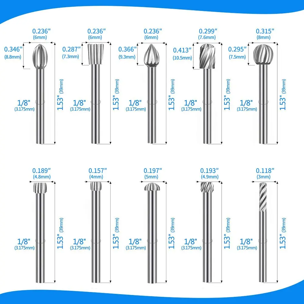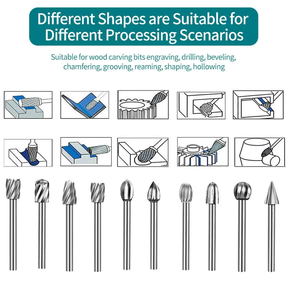 ·Different Burr Set: Meets diverse needs with various burr designs. Ideal for intricate wood engraving and detailing. ️