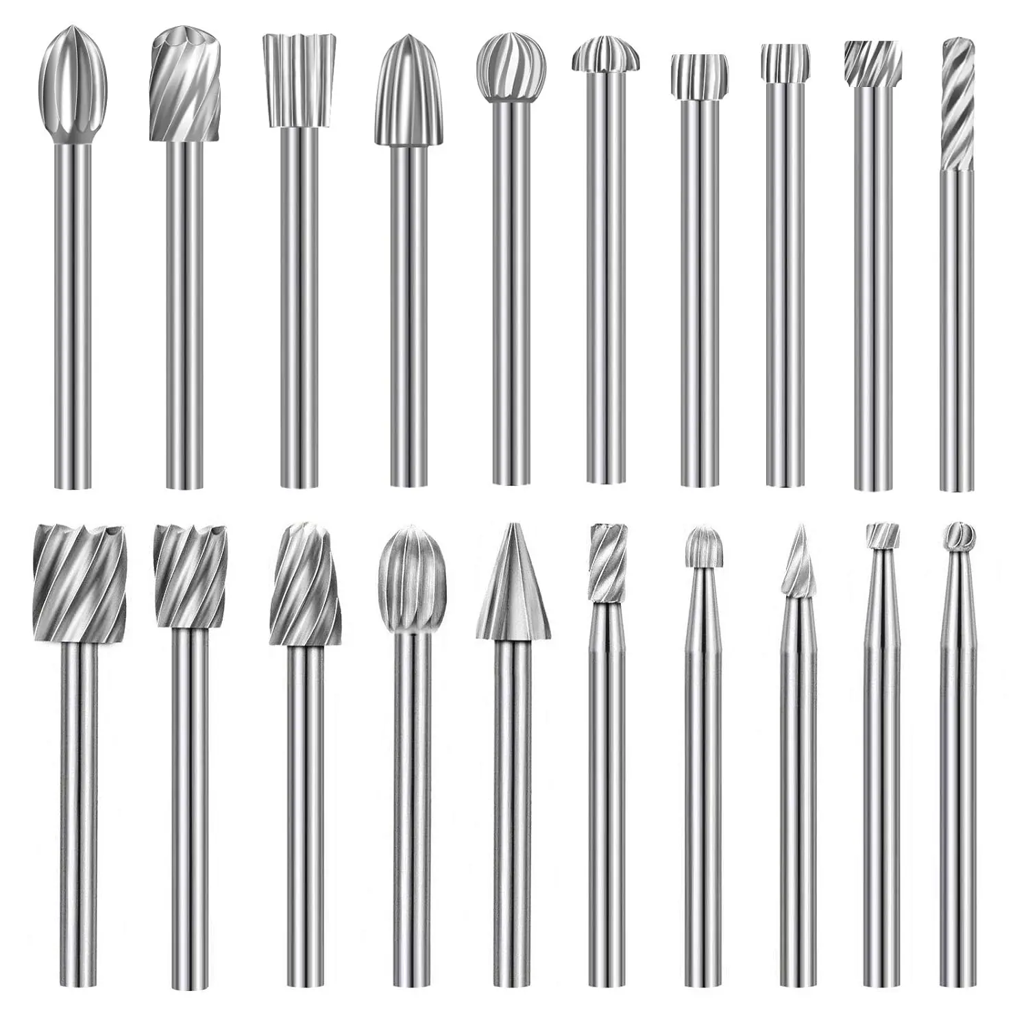 Carving Bits Wood Engraving Router Bit with 1/8"(3mm) Shank, 20Pcs HSS Different Burr Set to Meet Your Different Needs, Durable Rotary Tools Accessories for DIY Woodworking, Carving