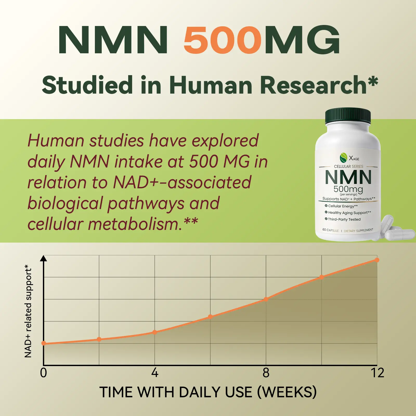 XAGE Cellular NMN 500mg Capsules - Cellular Energy & Healthy Aging Support, Antioxidant Blend