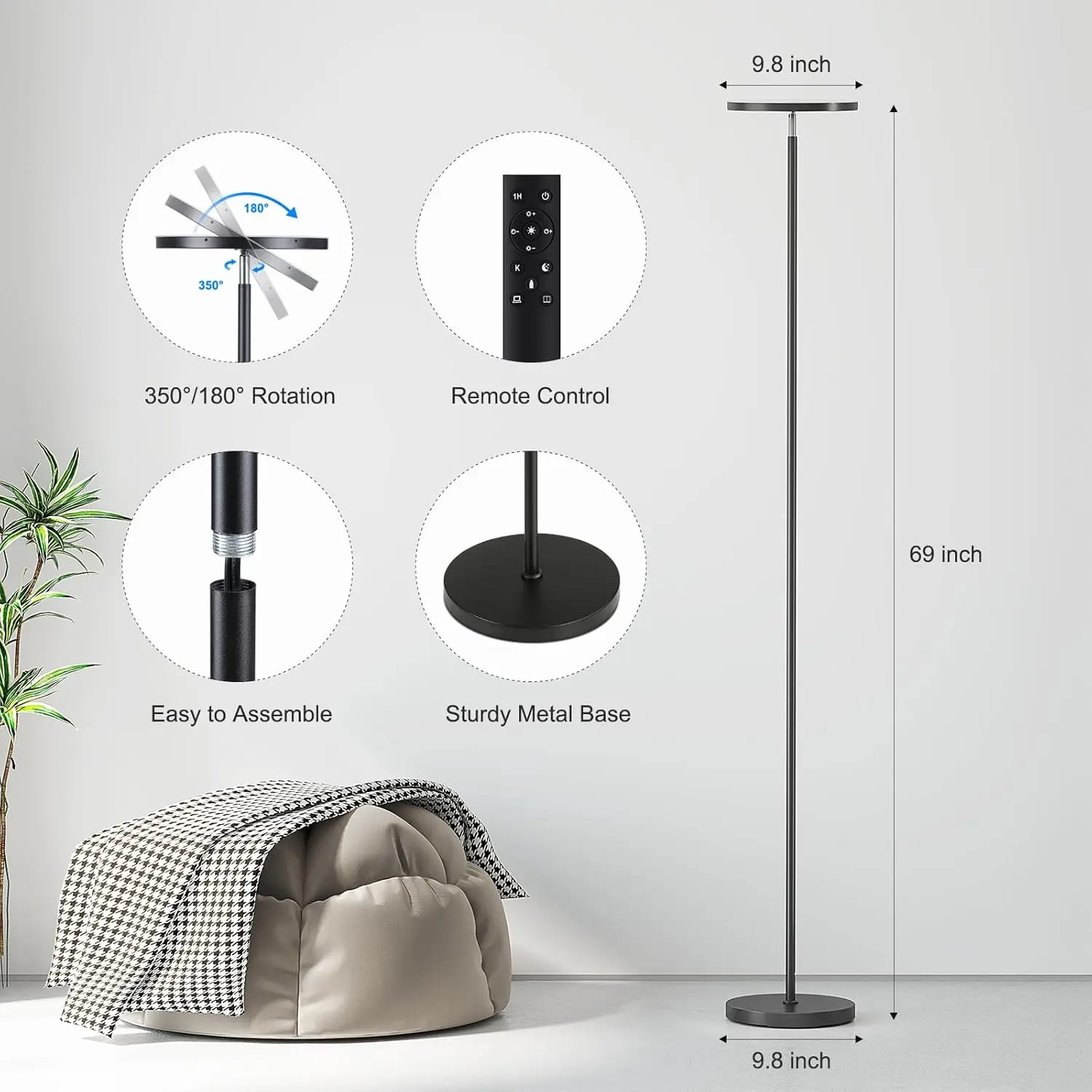 SUNMORY new torchiere floor lamp: let the light cover every corner.We are committed to making the design inclusive, simple and elegant, suitable for various living spaces and lighting up your life.SUNMORY is committed to providing high-quality lighting and furniture designed for comfortable living.