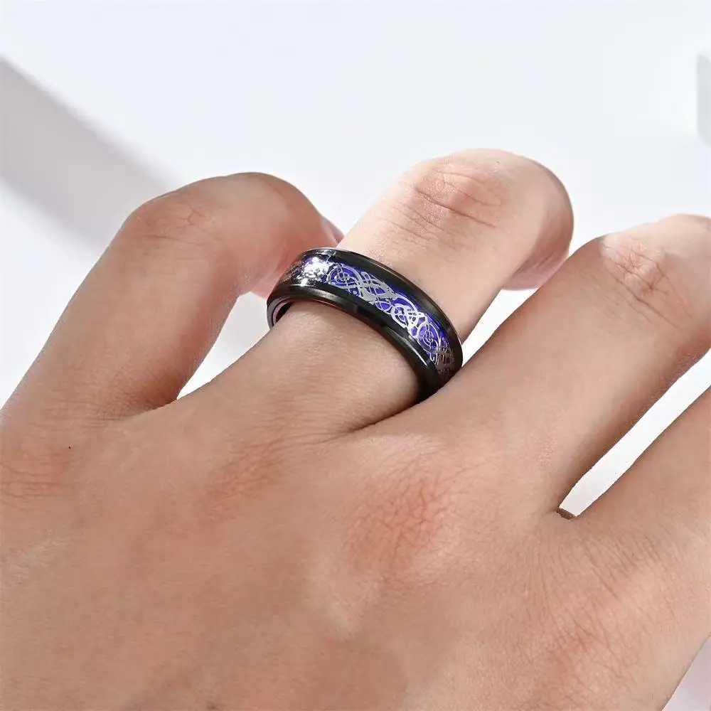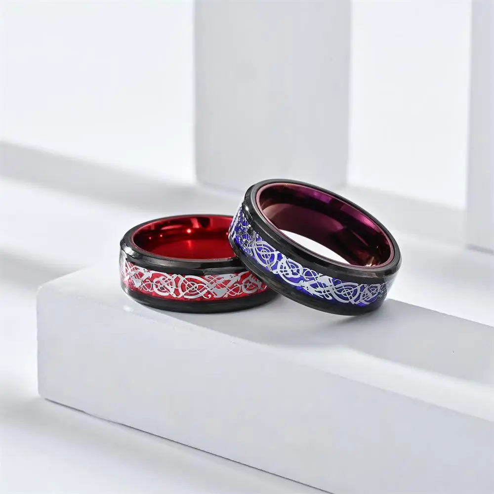 ✨Elevate your style with the Celtic Dragon 8MM Band Ring.Available in four vibrant colors: Red, Purple, Green, and Blue.Crafted from durable stainless steel, this unisex ring combines elegance, strength, and a touch of mystique, making it perfect for both men and women as a standout piece for any jewelry collection.