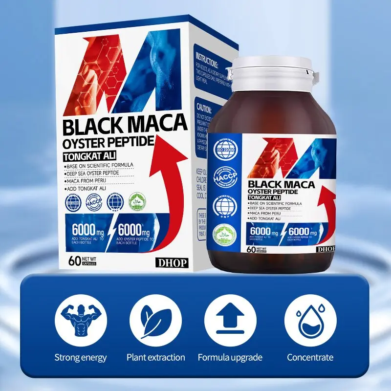 - Black Maca Oyster Peptide Capsules 6000mg | Max Strength Men's Energy & Immune Support with Tongkat Ali - 60 Ct