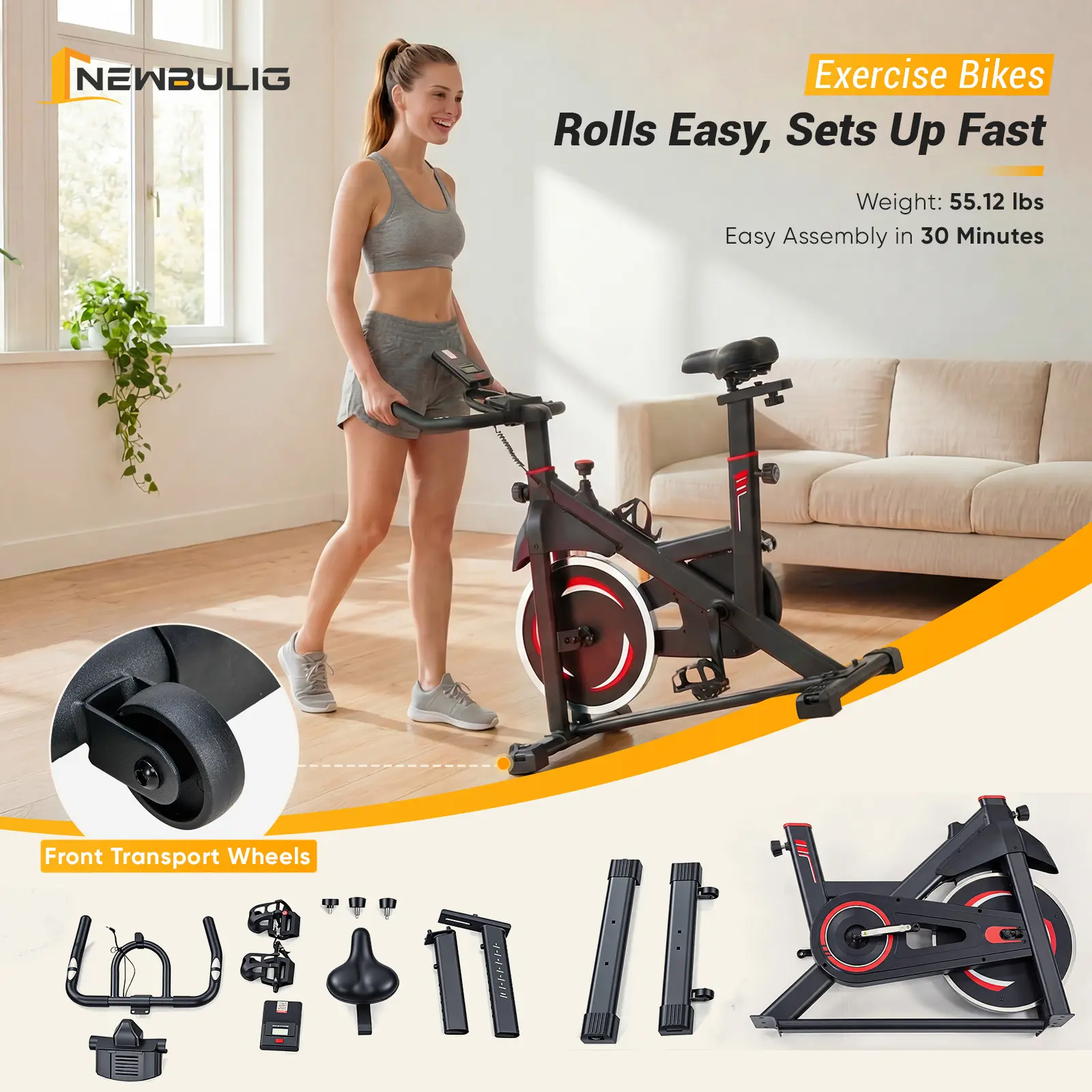 Enjoy a personalized workout with adjustable seat and handlebars. These features ensure comfort and proper form during your sessions. The bike's design accommodates different body types, making it a versatile choice for home fitness.