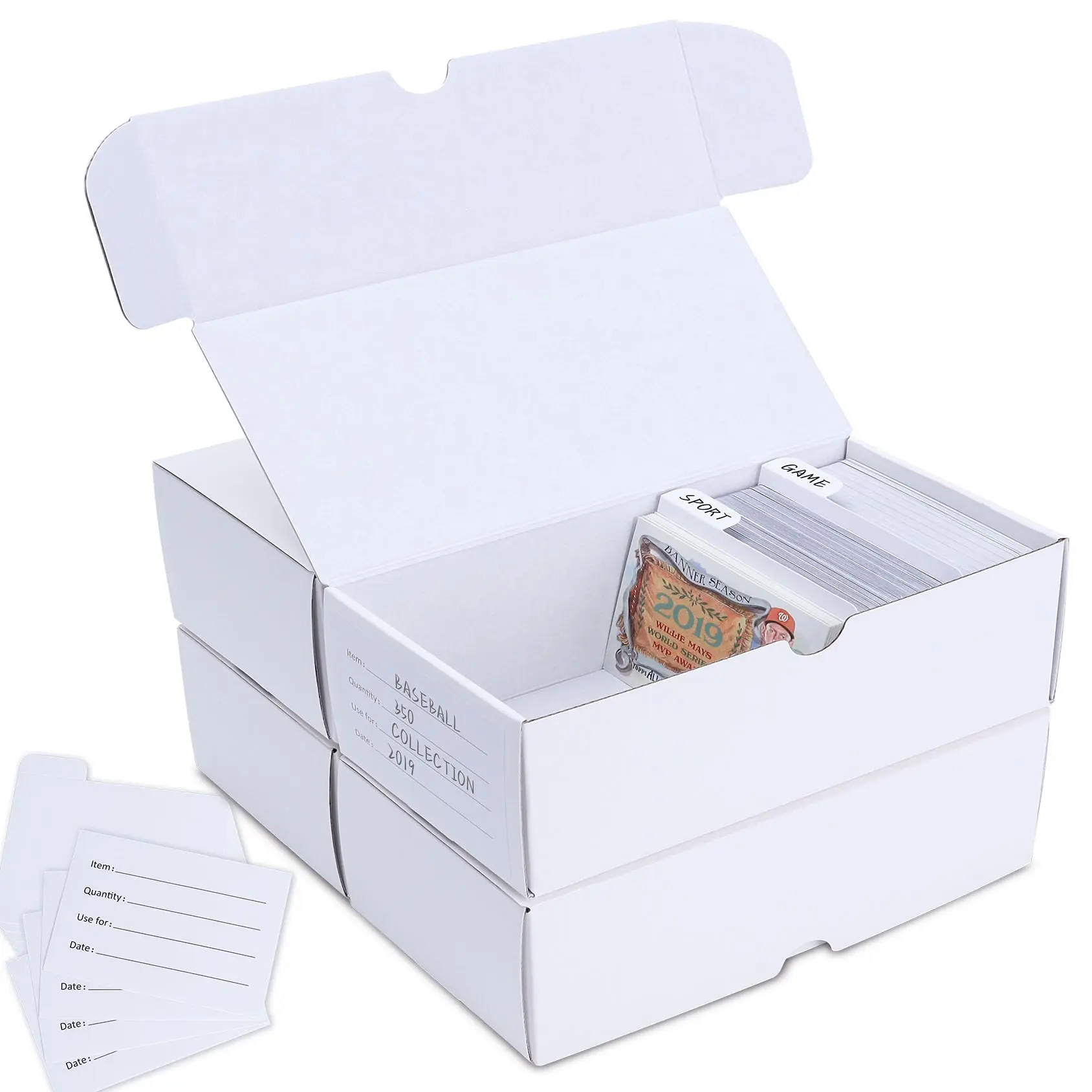 Baseball Card Storage Box with card dividers & labels.