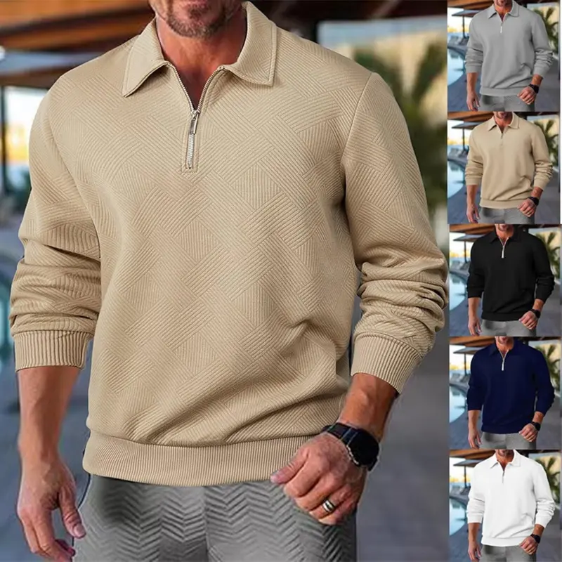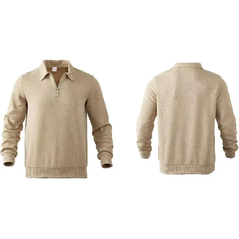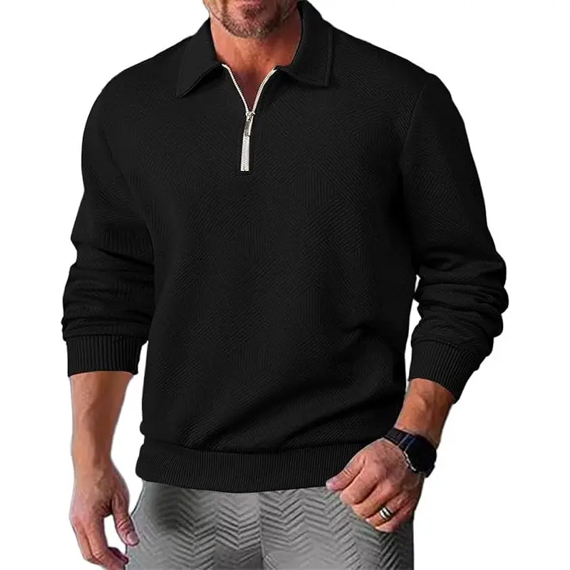 Mens Polo Shirt Quarter Zipper Long Sleeve Jacquard Mock Neck Knitted Business Sweatshirt Retro Golf Shirts