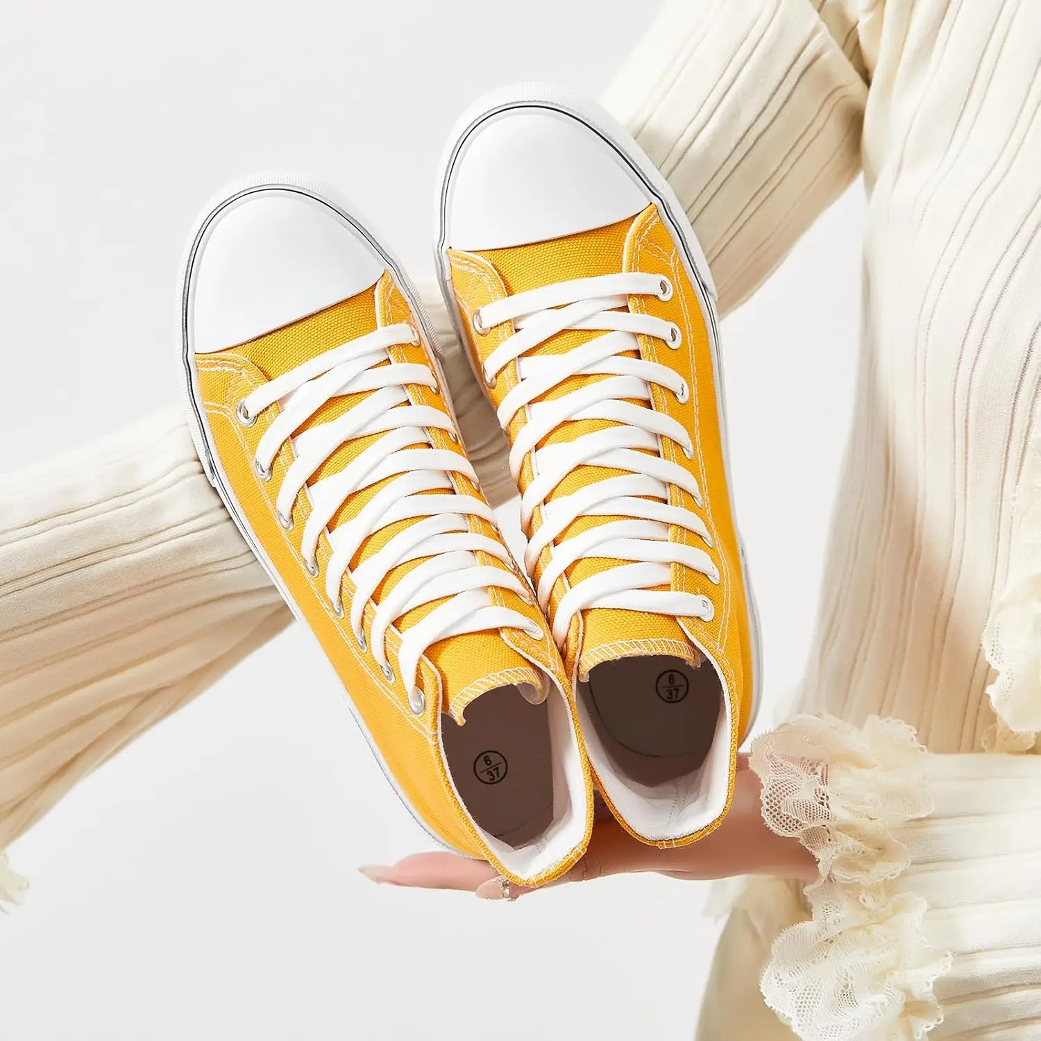 [Comfort and Breatherable]hash bubbie Women's Fashion Sneakers are made of Superior Canvas Upper,which makes you Feel Breathable when you wear them.The Shoes Reinforce and Soften the Heel, they don't grind your feet,and not tired when walking or running. [Classic Style]Toecap and heel with rubber mould structure, enhances protection for feet. The Lace-up Shoes are Timeless,they feature Younger and Livelier, Free and Cute,Suitable for all Year Round. It's a good choice for back-to-school . The high-top design can protect the ankle well. [Anti Slip]High-Top Sneakers for Women are Anti-Slip and Soft thanks to the Durable Rubber Sole,Individual Stripe Design at the Bottom for Enhanced Friction and Grip. [Suitable Occasion] :Classics Canvas shoes easy to paired with casual clothes ,jeans ,shorts ,skirts etc.Good choice for office working ,at home ,shopping or attend party ,hiking and traveling ect. [hash bubbie Size Tips]:High-Top Canvas Shoes are designed for USA womens ,If you can check the size before ordering, maybe you will get a more fit and comfortable shoes.