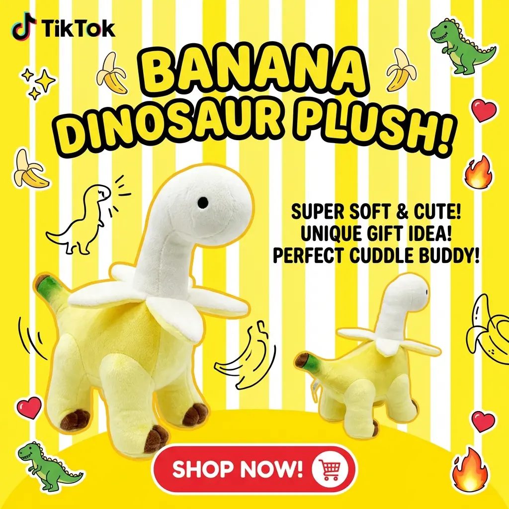 Adorable Banana Dragon Plush - Ultra-Soft Stuffed Dinosaur Toy - Fun & Creative Soothing Doll - Kawaii Room Accessory & Birthday Present
