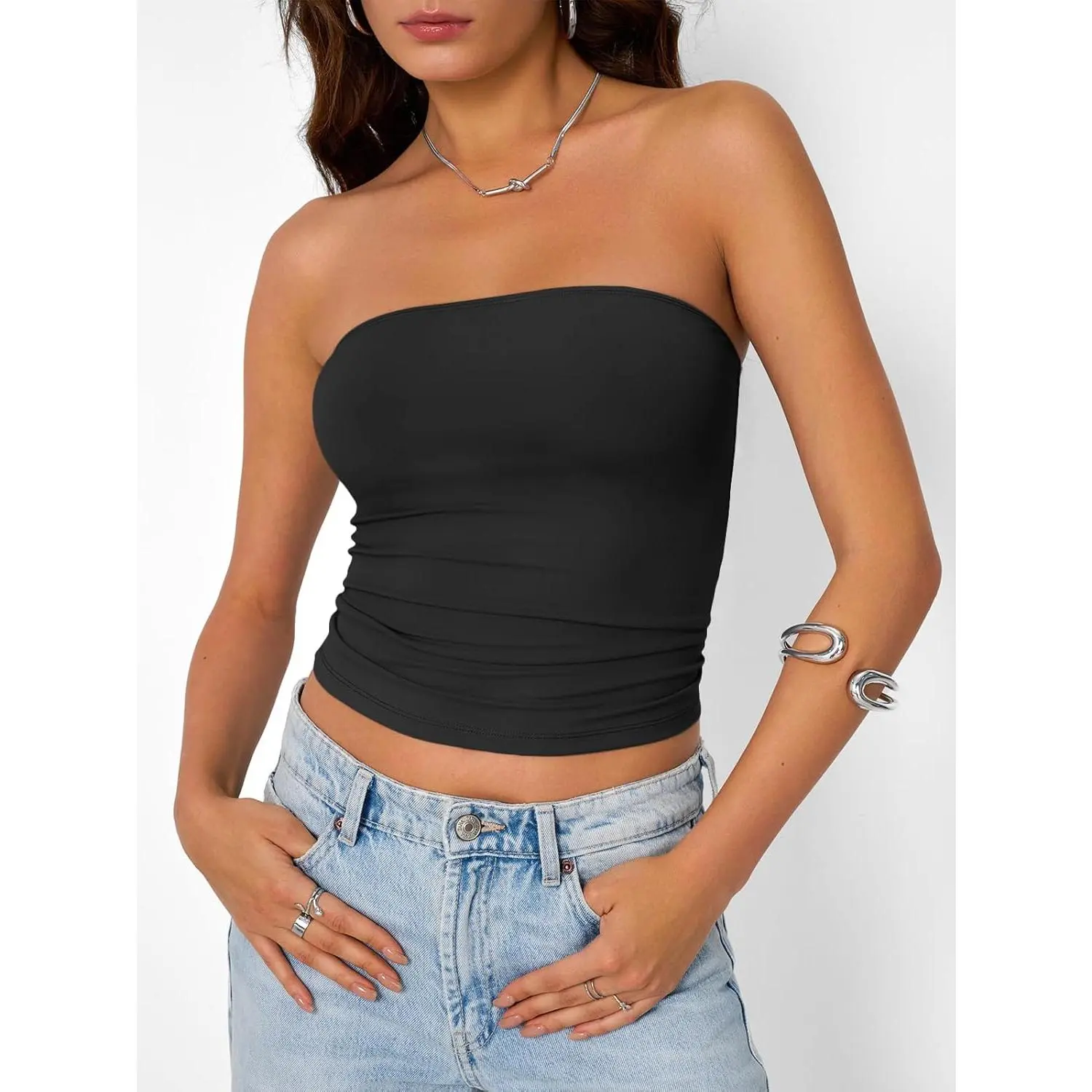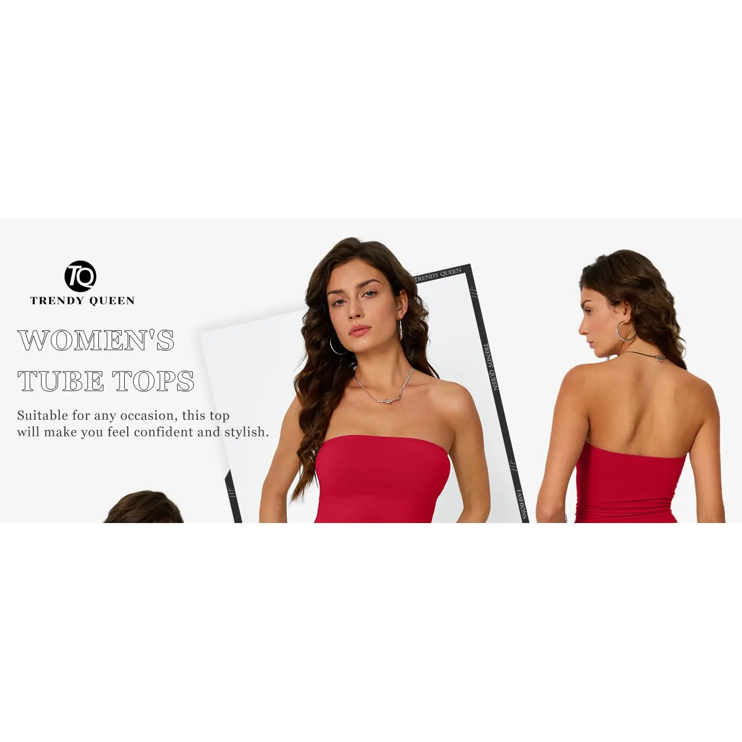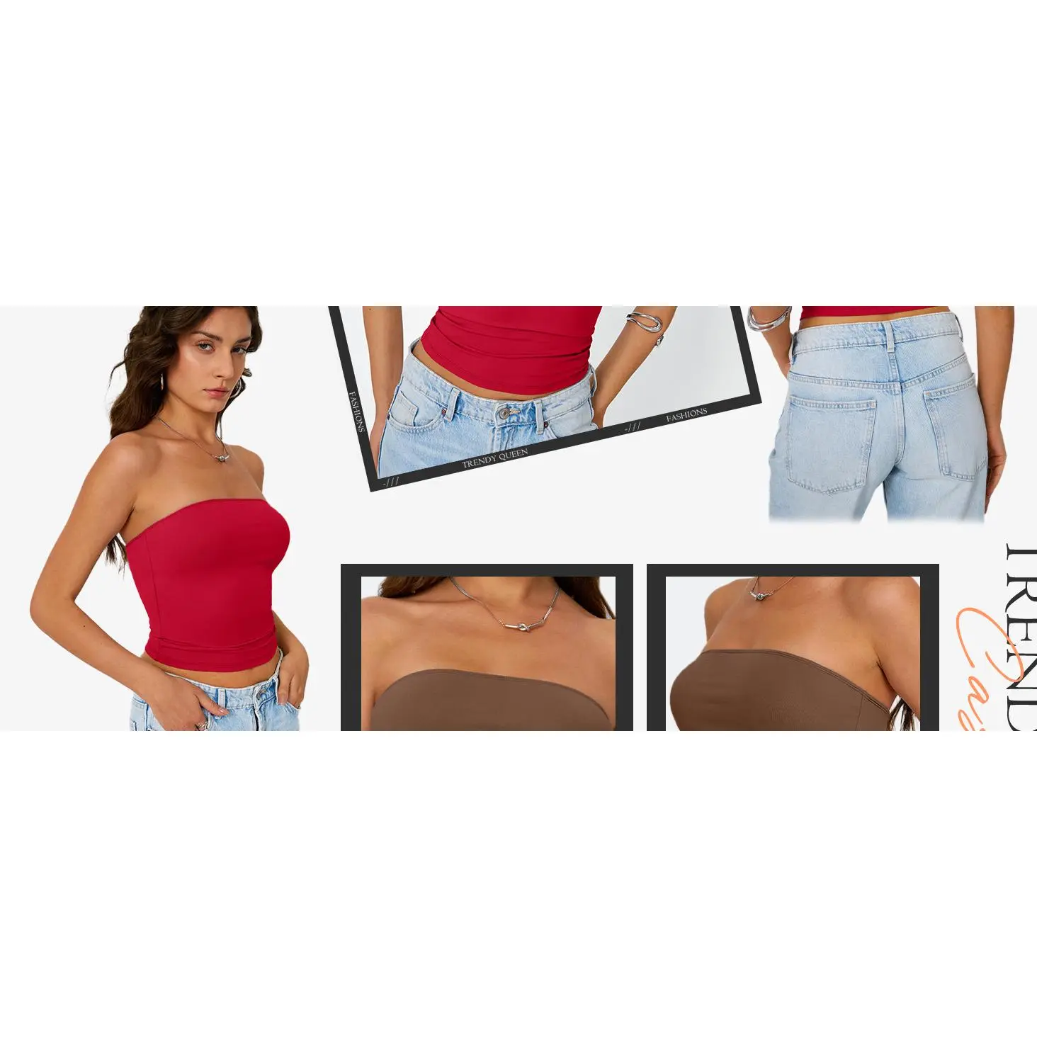 QINSEN Women's Tube Tops Strapless Bandeau Tops Double Lined Slim Fit Summer Going Out Tank Tops