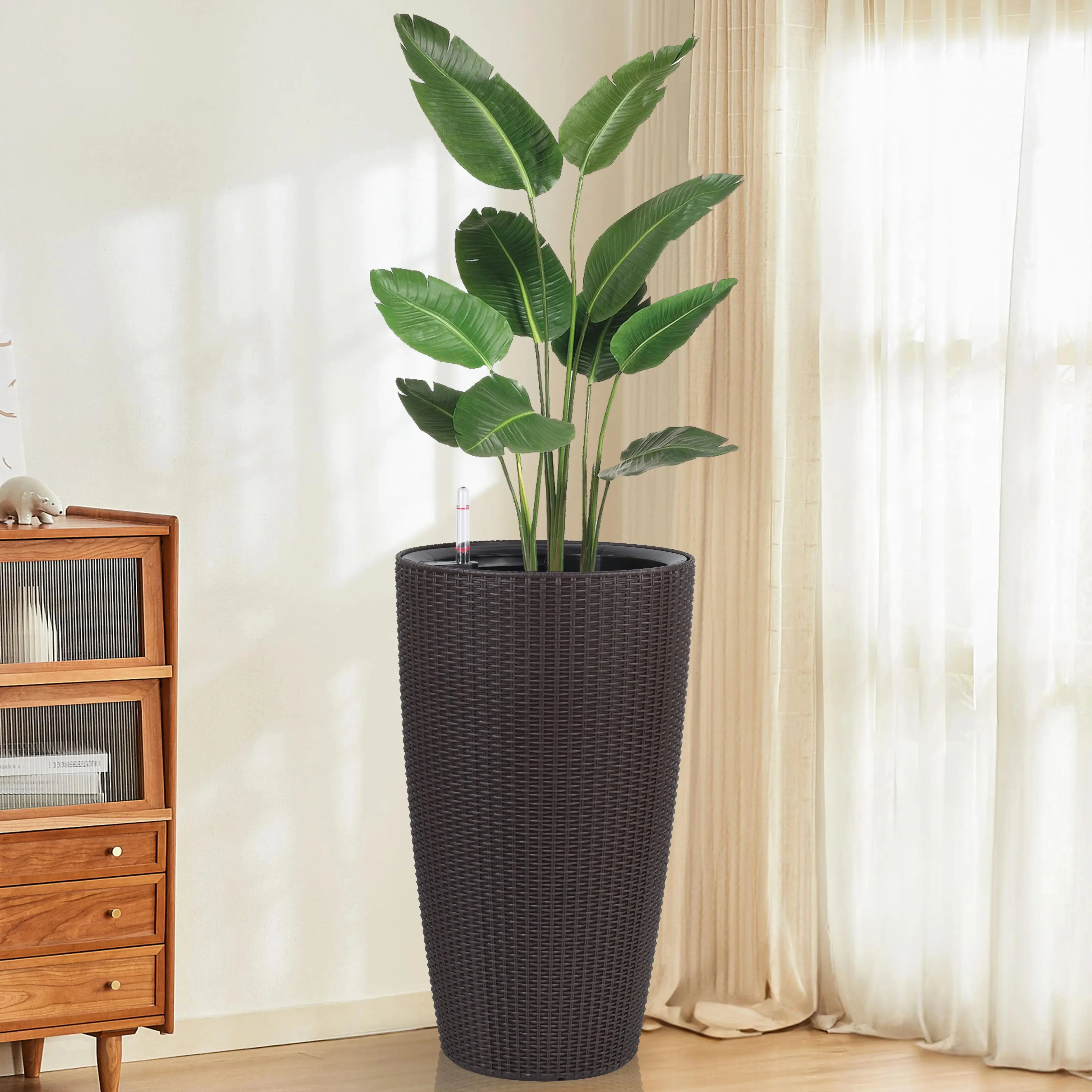 In Stock 22.5.in Plastic Rattan Self-watering Flower Pot for Indoor and Outdoor Use