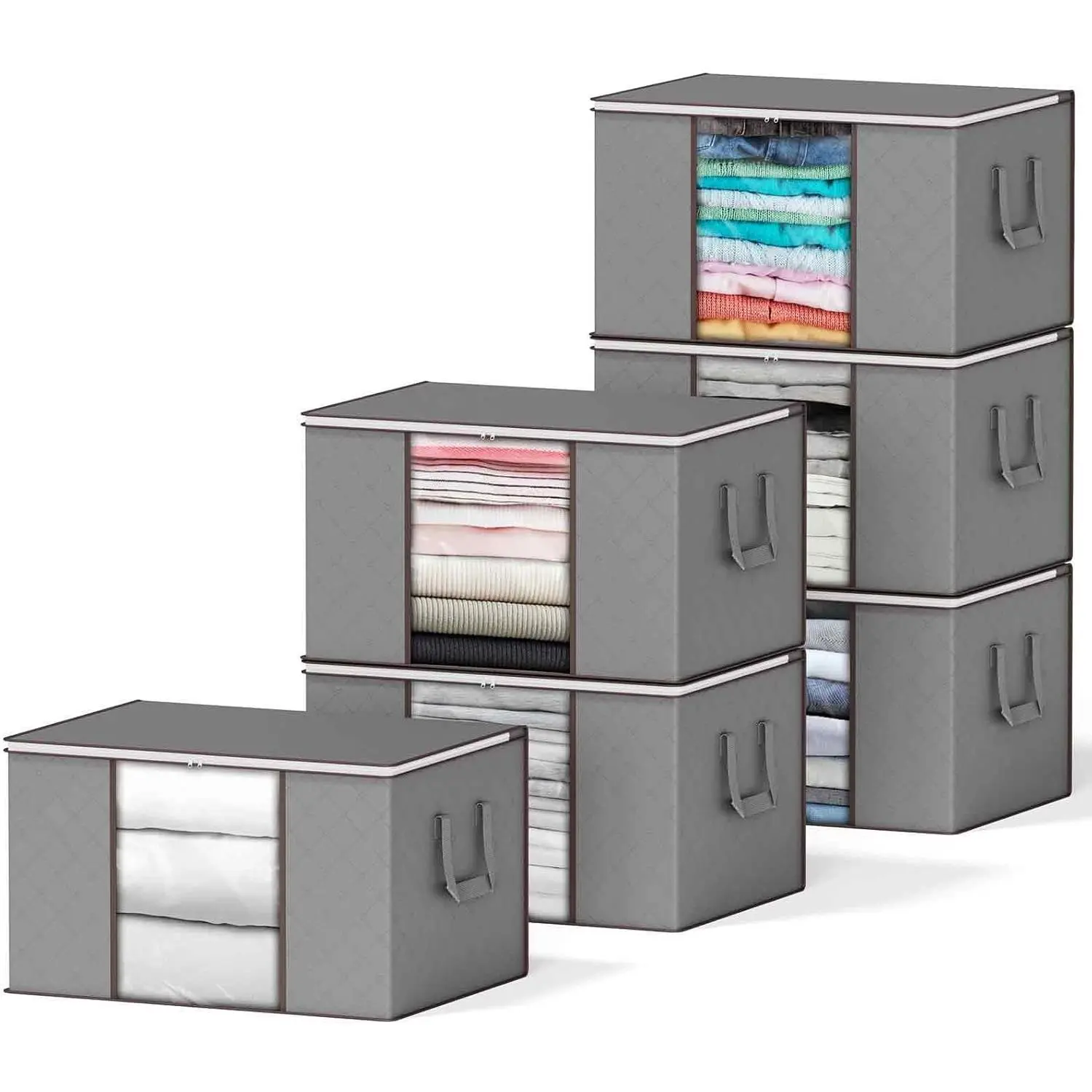 6 Pack 90L Clothing Storage Bags, Heavy Duty Closet Storage Bins, Extra Large Moving bags, Storage Containers for Clothes, Blankets, Comforters, and Pillows - Gray