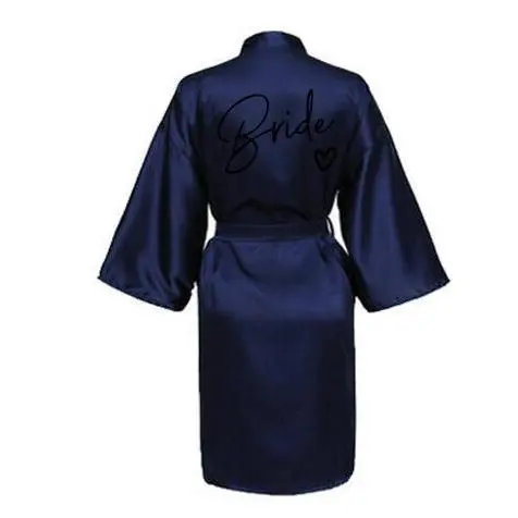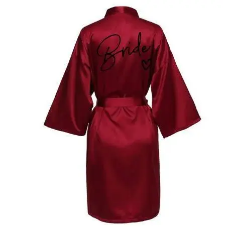 Wedding Party Team Bride Robe With Black Letters Kimono Satin Pajamas Bridesmaid Bathrobe SP003