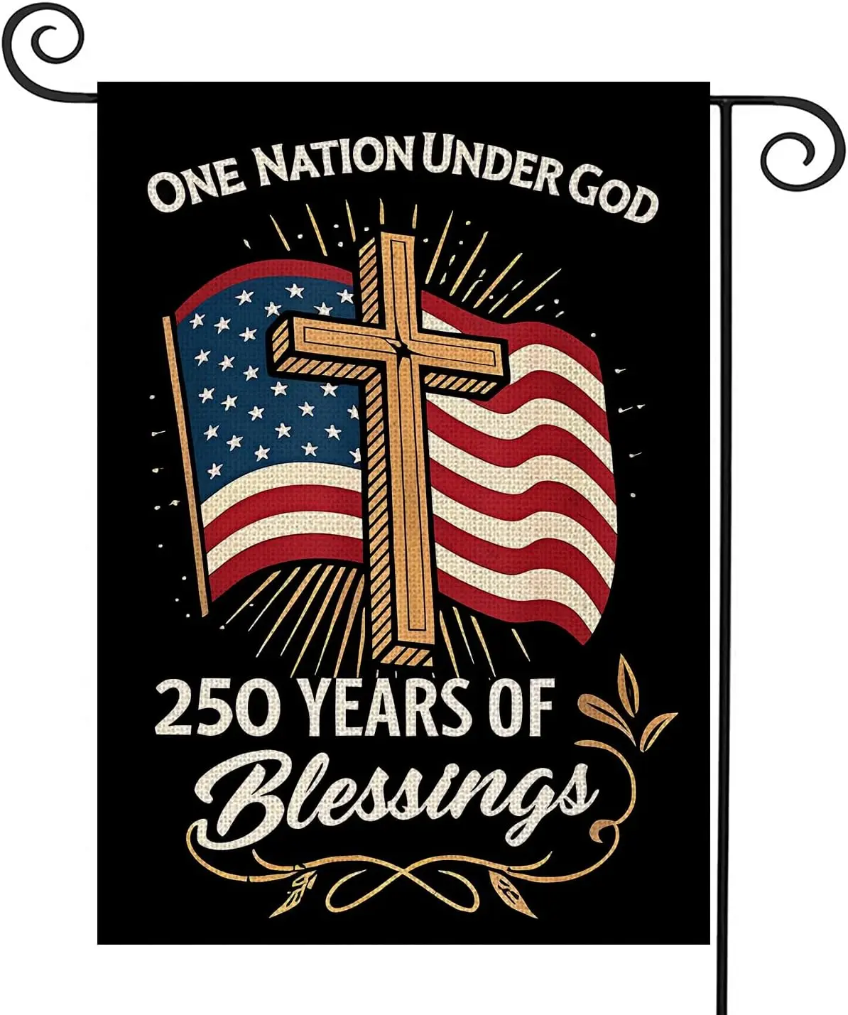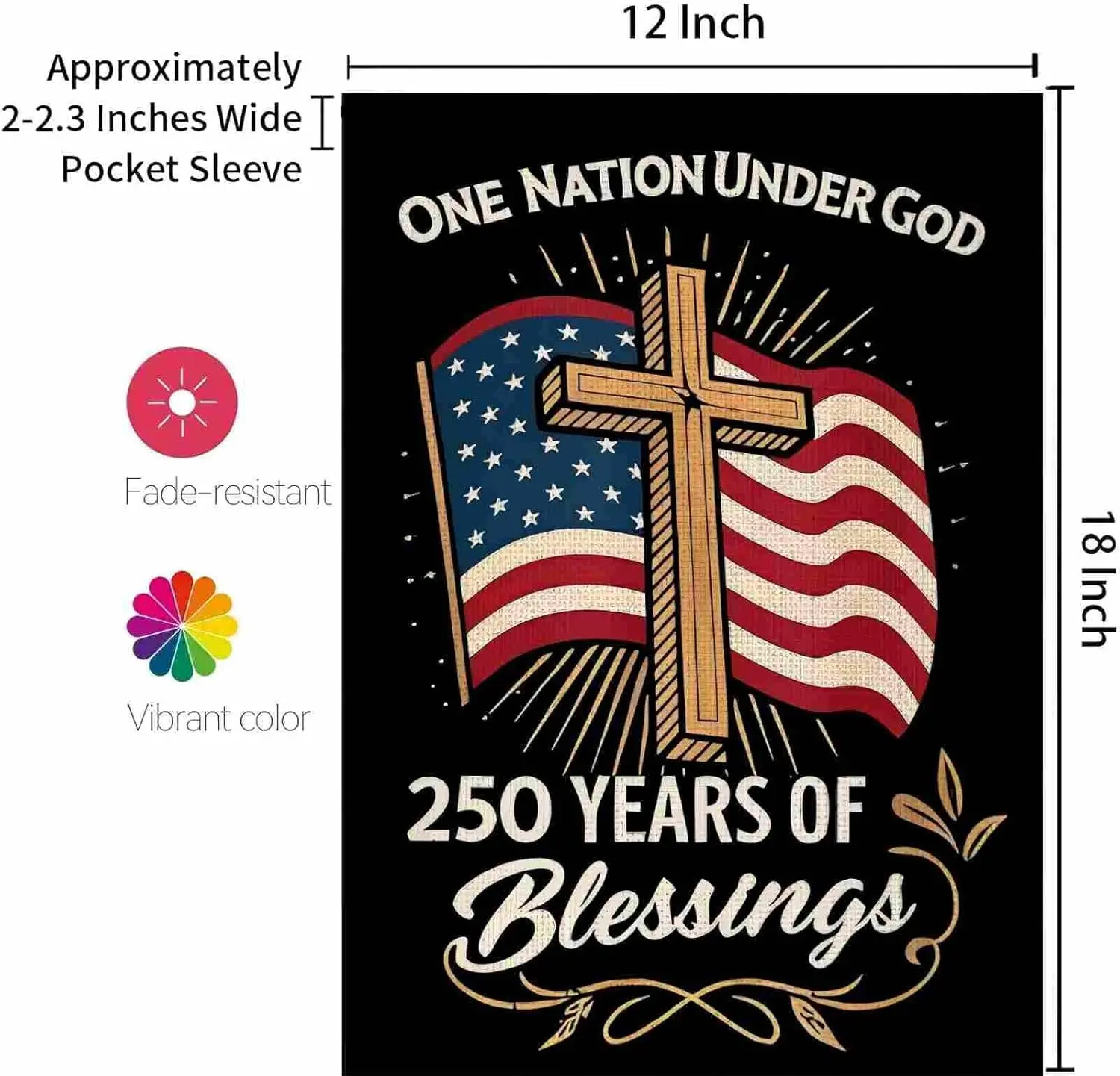 Blessings America Garden Flag 250, One Nation Under God,250th Anniversary Patriotic Cross Design, Double-Sided Burlap, 12 x 18 Inches