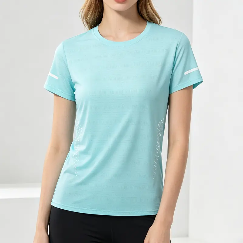 New women’s quick-dry sports T-shirt with reflective stripes, breathable athletic top, lightweight for running, fitness, and yoga