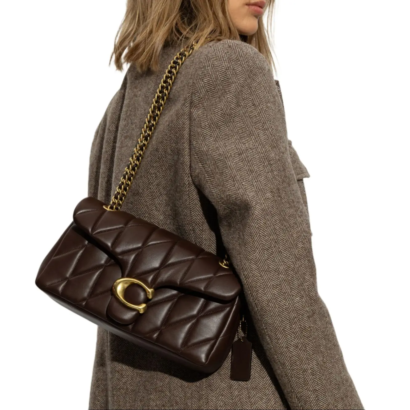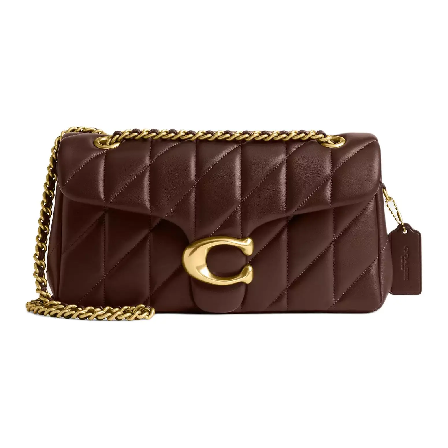 Design Concept: Clean lines, soft structure, and intentional asymmetry define the Tabby. Its signature front flap features a subtle curved edge and debossed COACH logo, balancing timeless refinement with effortless urban flair.