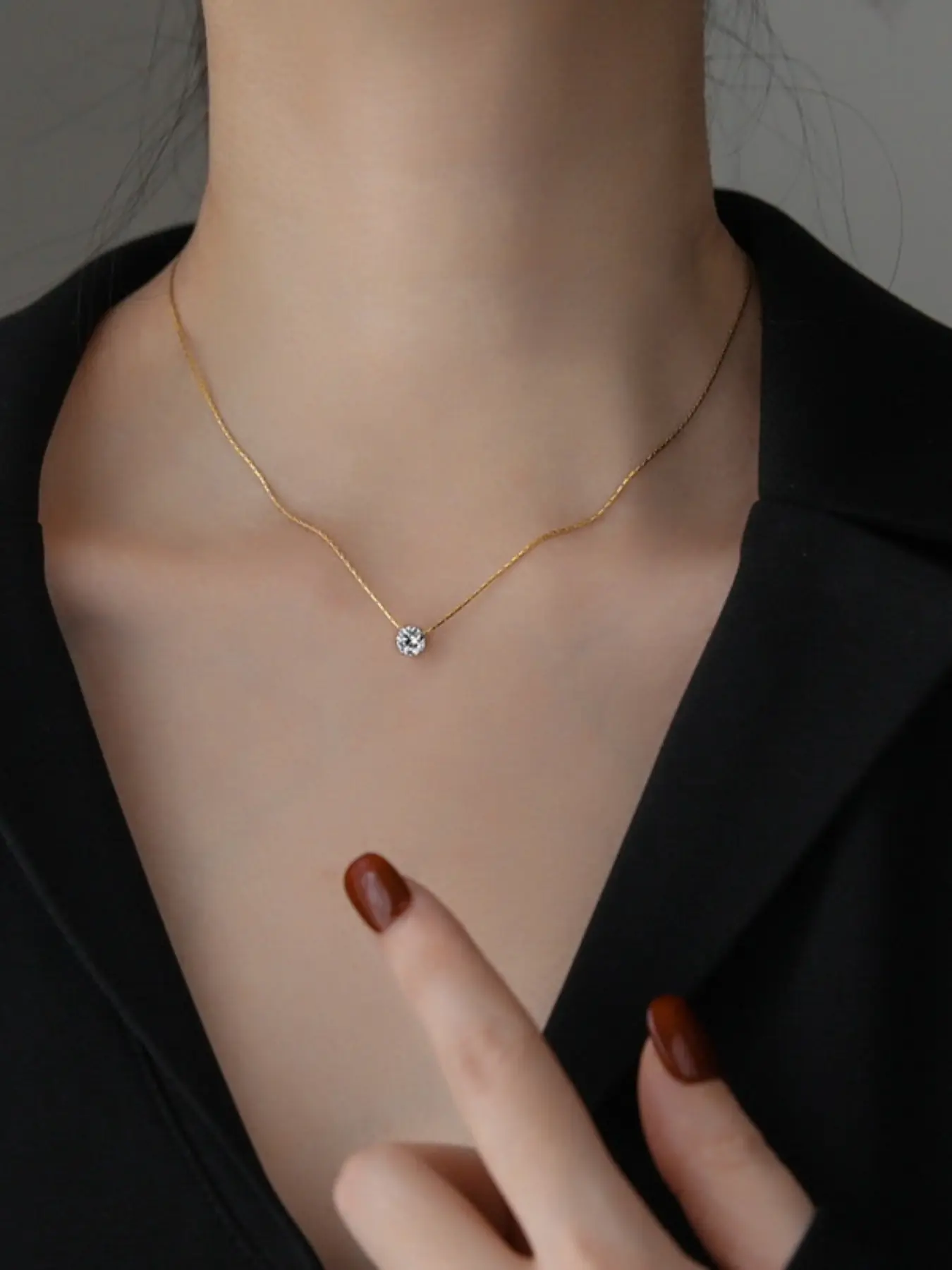 A new six claw diamond pendant necklace, with a high-end and niche light luxury style. The six claw diamond pendant features exquisite and sparkling details, and the long collarbone chain design is suitable for summer jewelry scenes. Suitable for women's