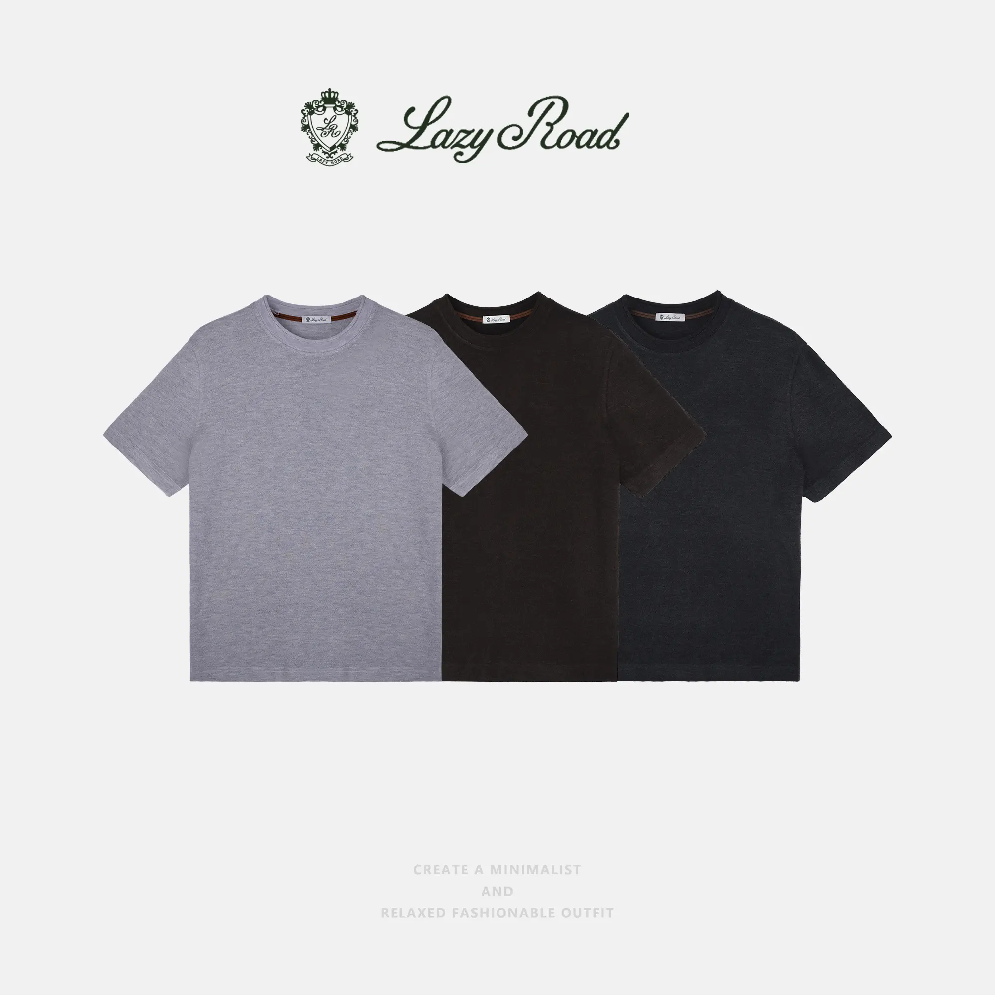 LazyRoad Men's Silk Wool Blend Basic T-Shirt crafted with 41.6% Polyester, 32.4% Acrylic, 20.3% Nylon, 3% Silk and 2.7% Wool. Features ultra-soft, anti-wrinkle fabric with a premium touch, perfect for everyday wear and layering. Timeless relaxed fit in three neutral shades, embodying old money quiet luxury.