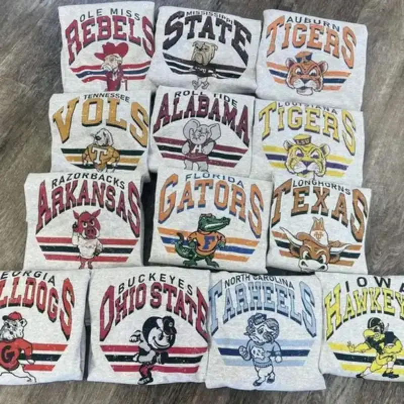 5. Vintage College Mascot Sweatshirt - Ash Grey Color, Retro NCAA Style Graphic Tee, University Sports Shirt, Unisex Cotton Top, Classic Campus Streetwear - RO