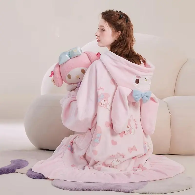 Kawaii My Melody Women Plush Pajamas Robe Set Homewear Cartoon Winter Long Style Thickened Nightgown Pants Anime Sweet Cartoon