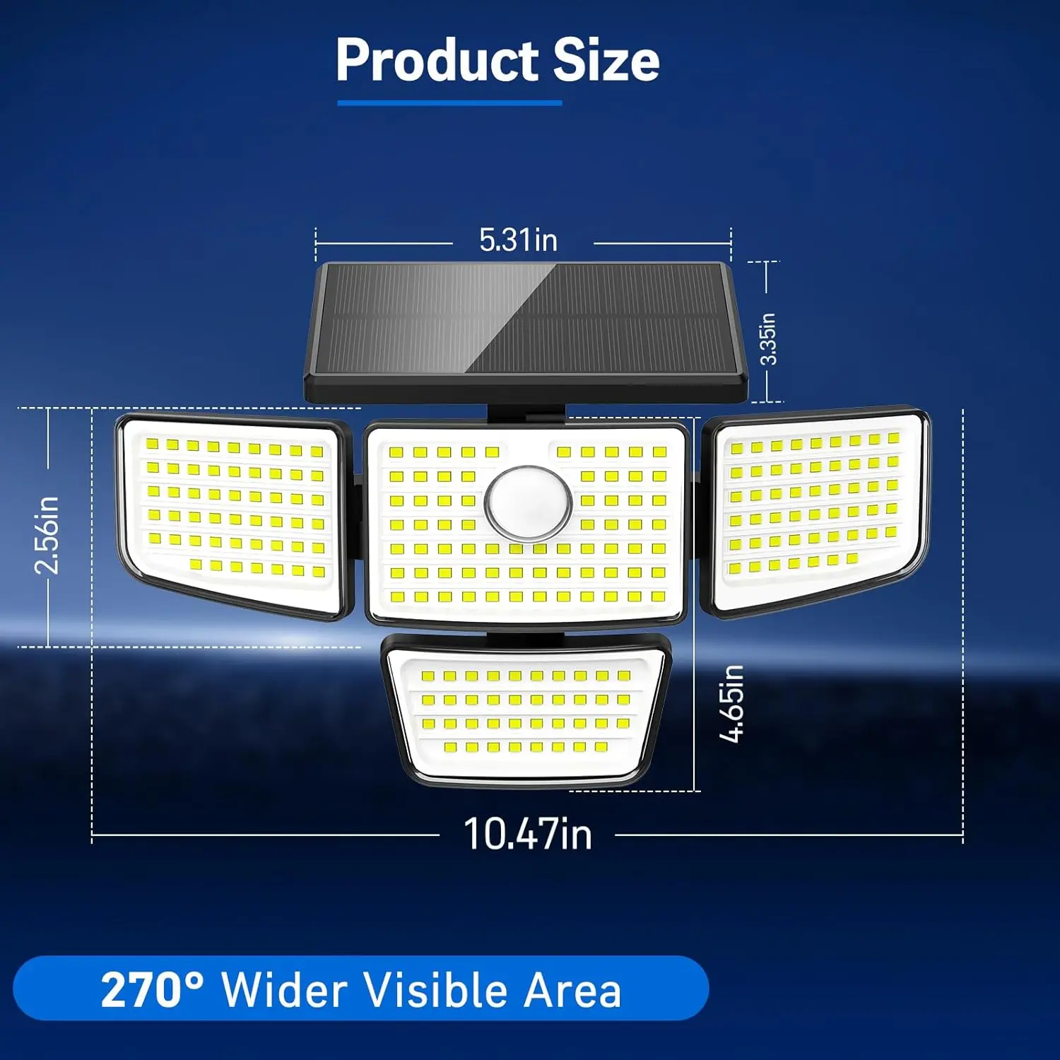 ·【270° Wide-Angle & Sensitive Motion Sensing】Our solar lights outdoor waterproof have 3 adjustable lamp heads, realizing 270° full-range coverage. These motion sensor outdoor lights detect motion within 30ft/180°, instantly lighting up. Perfect solar lights outdoor for yard, patio—reliable solar lights and outdoor lights to boost outdoor security.