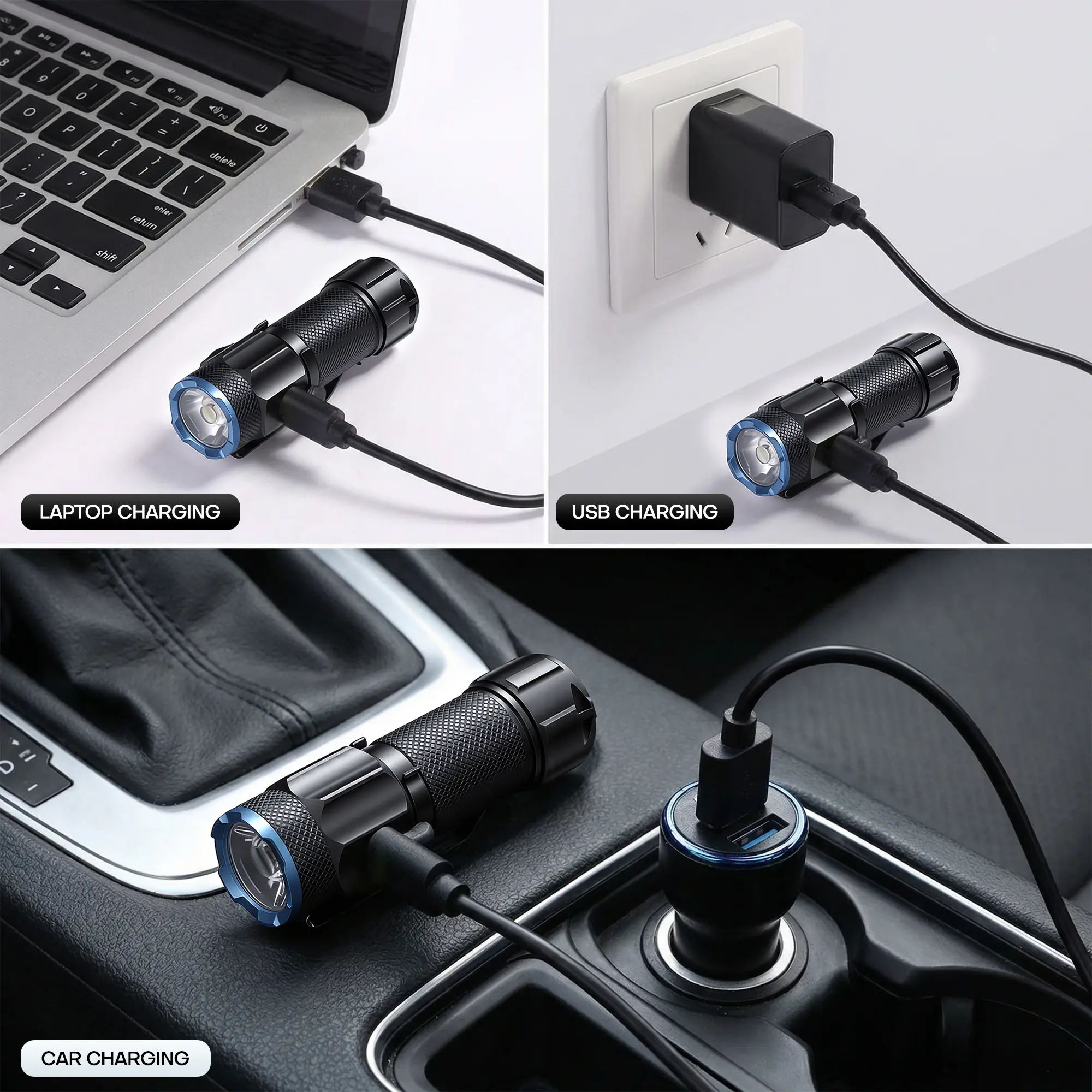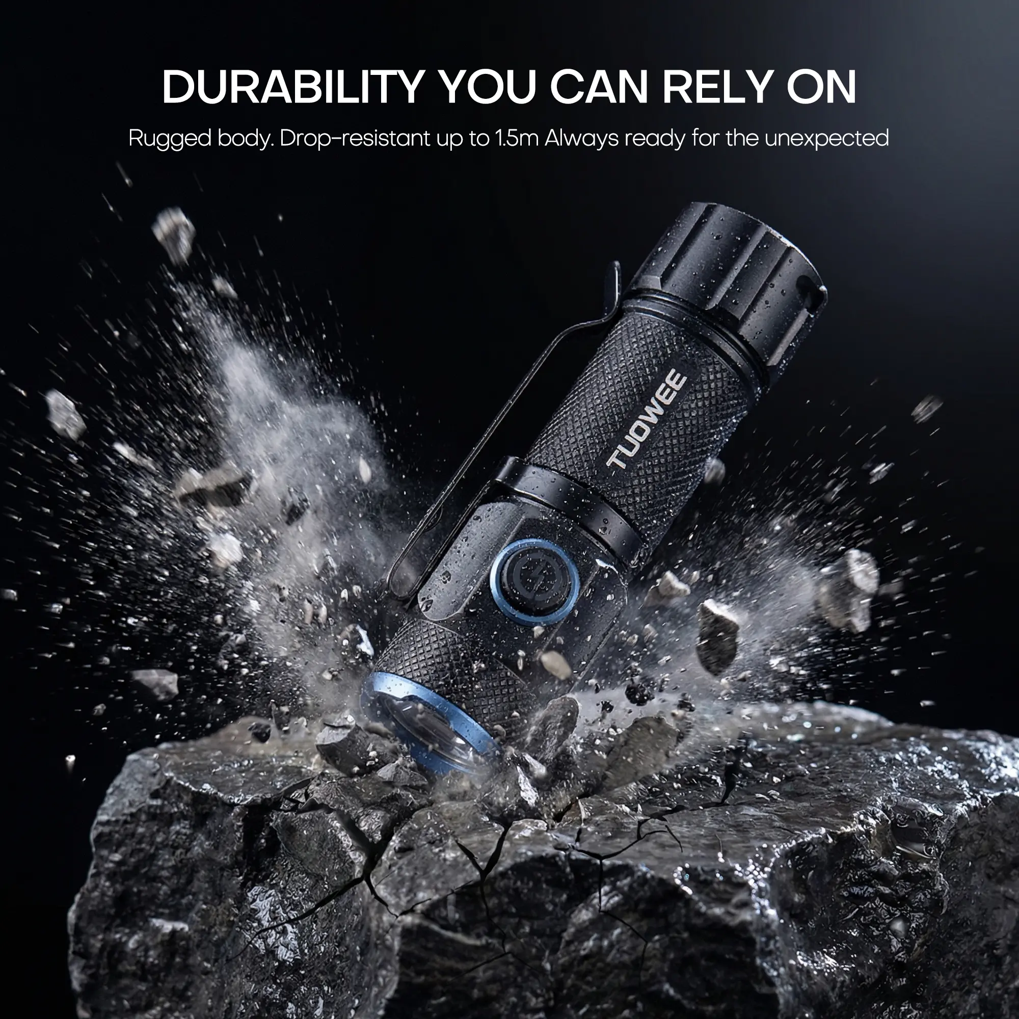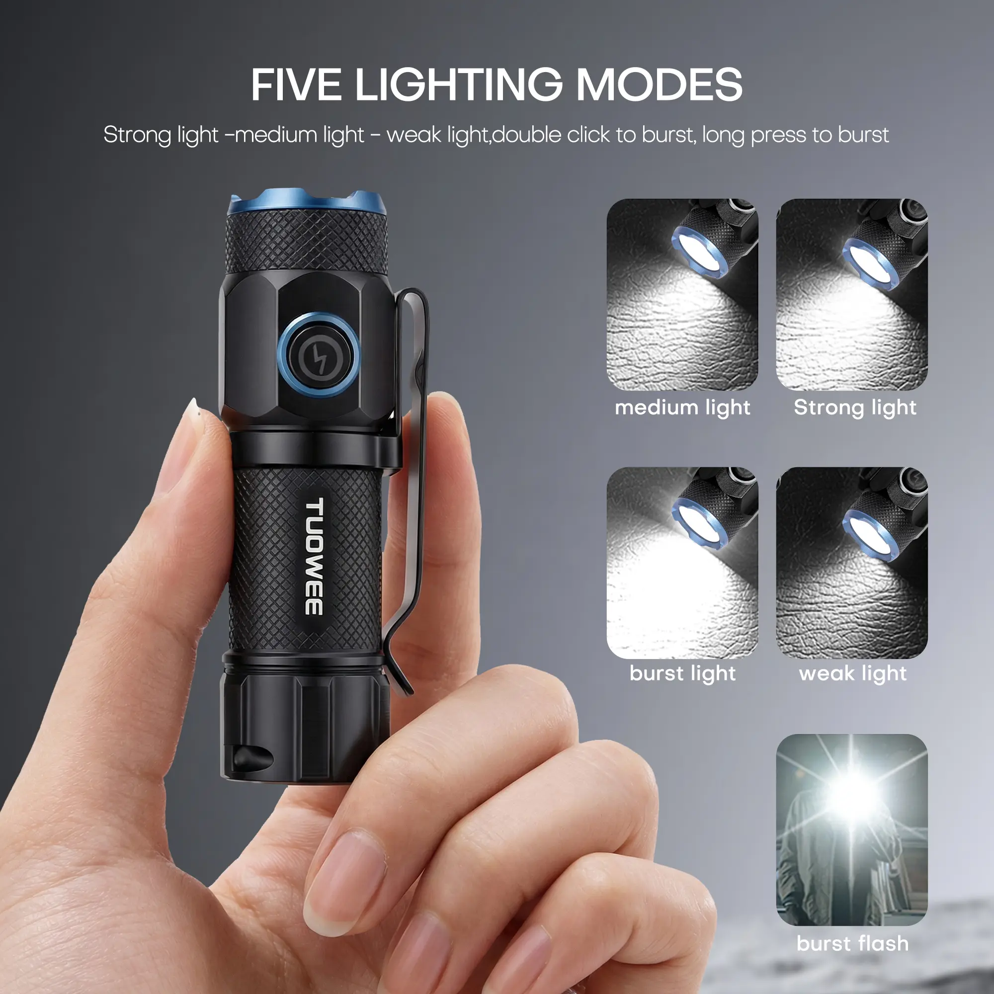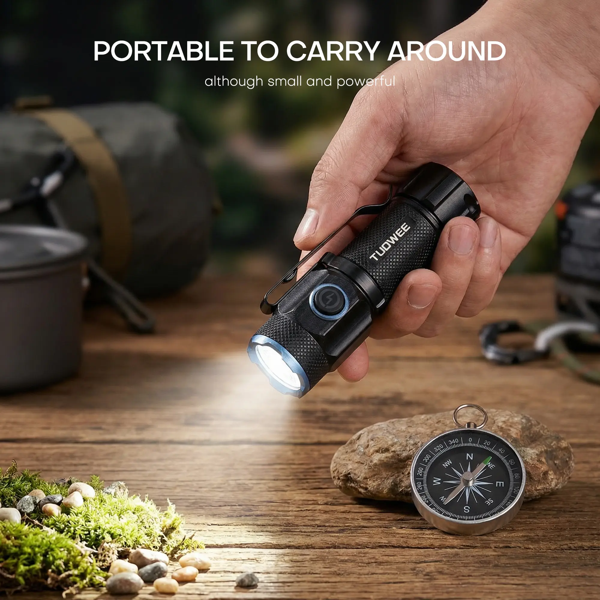 Portable Rechargeable Flashlight, 1000 Lumens Ultra Bright EDC Torch with USB-C Charging, 5 Lighting Modes, Compact Tactical Flashlight with Pocket Clip for Camping, Hiking, Emergencies, Daily Use