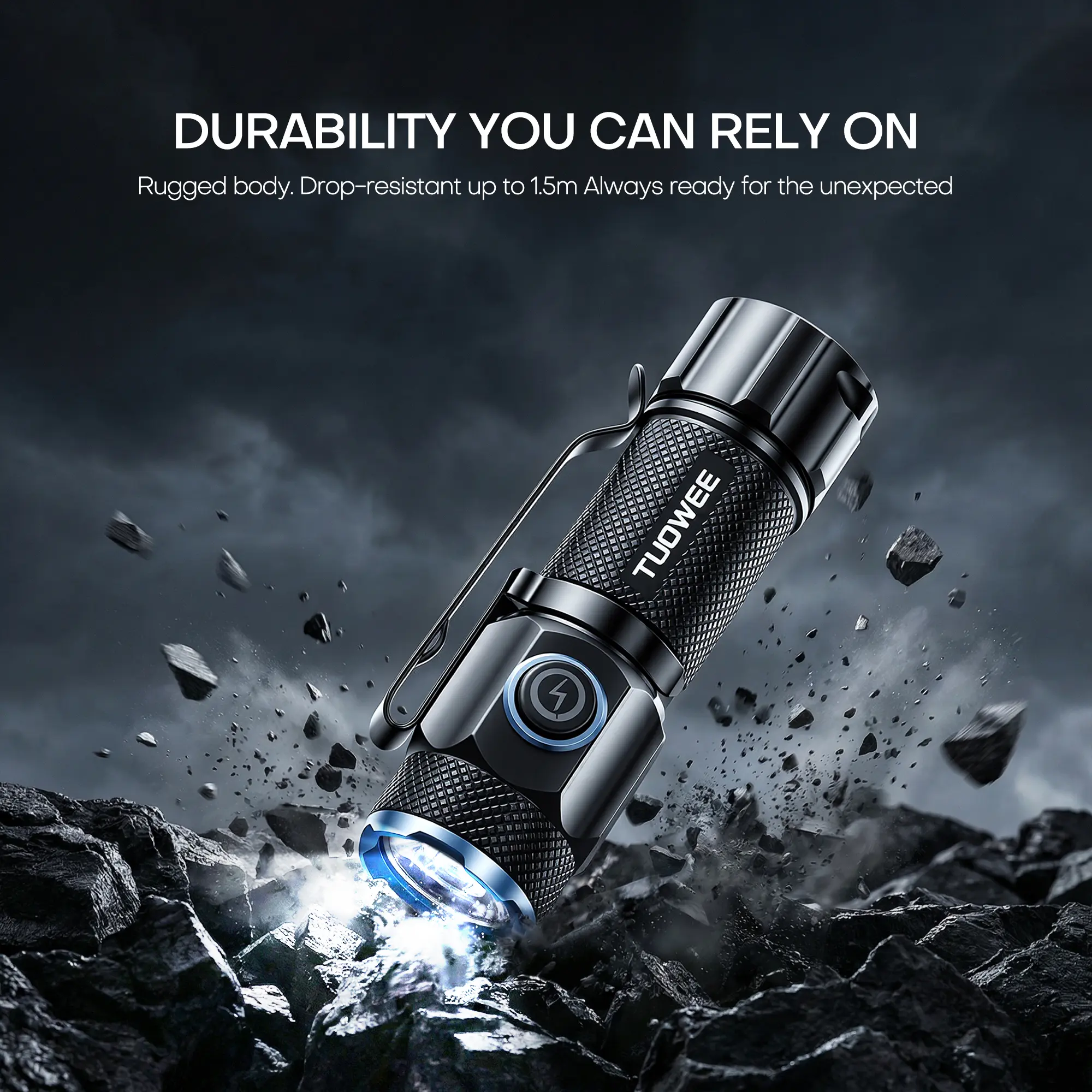 WARSUN T7 EDC Flashlight, Compact Multi-Mode Pocket LED Flashlight, USB-C Rechargeable, IPX4, Dual Material, Red/Blue Strobe