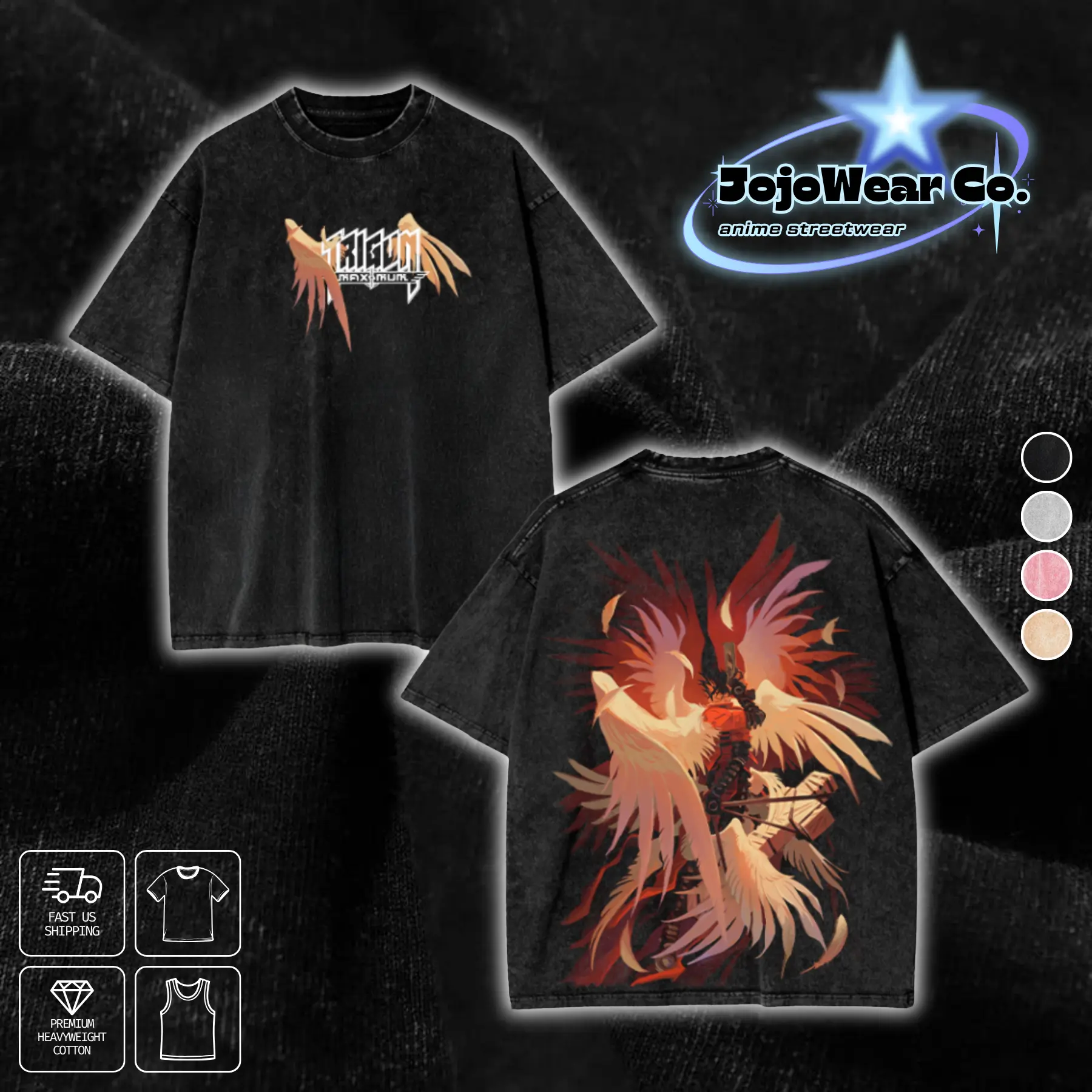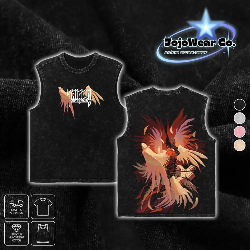 Vash the Stampede Angel Wings Graphic T-shirt Trigun Maximum Hoodie Crewneck Sweatshirt Tank Top Oversized Streetwear 100% Premium Cotton Fabric Tee Unisex Vintage Double Printed Washed Top Gift For Trigun Anime Manga Fan Menswear Apparel