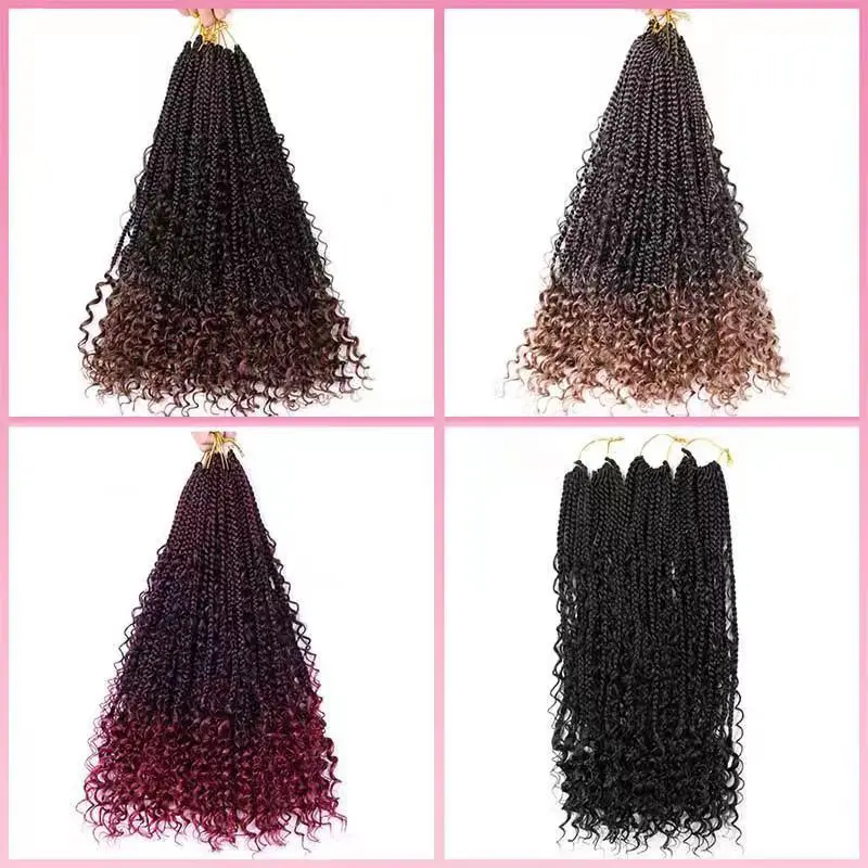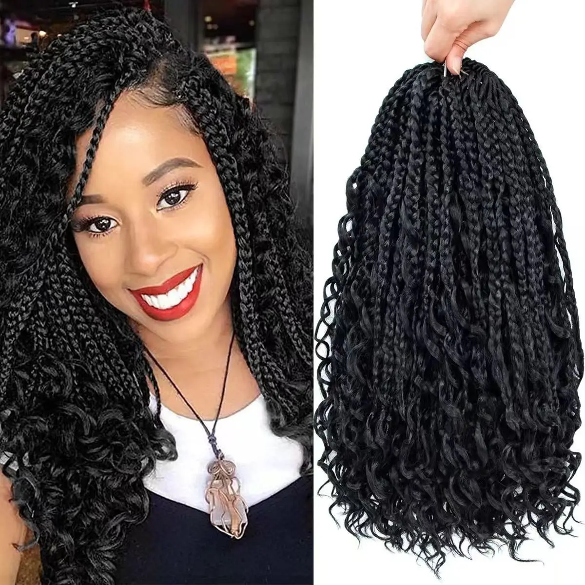 DB- 14" Synthetic Crochet Hair 3 Strand Box Braids Goddess Style Hair Extensions for Women-DB