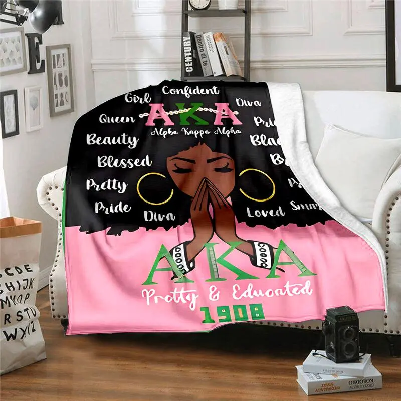 Aka Alpha Kappa Alpha Black Girl Queen Diva Pride Beauty Pattern Print Blanket Four Seasons Home Travel Camping Flannel Throw Blanket Bedroom Coach Decor Family Friends Birthday Christmas Gift LXR f131