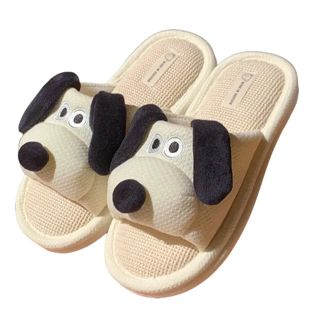 Women's big eared dog indoor poop floor slippers cute and lovely big eared dog soft soled linen slippers shoes walking shoes flip flops