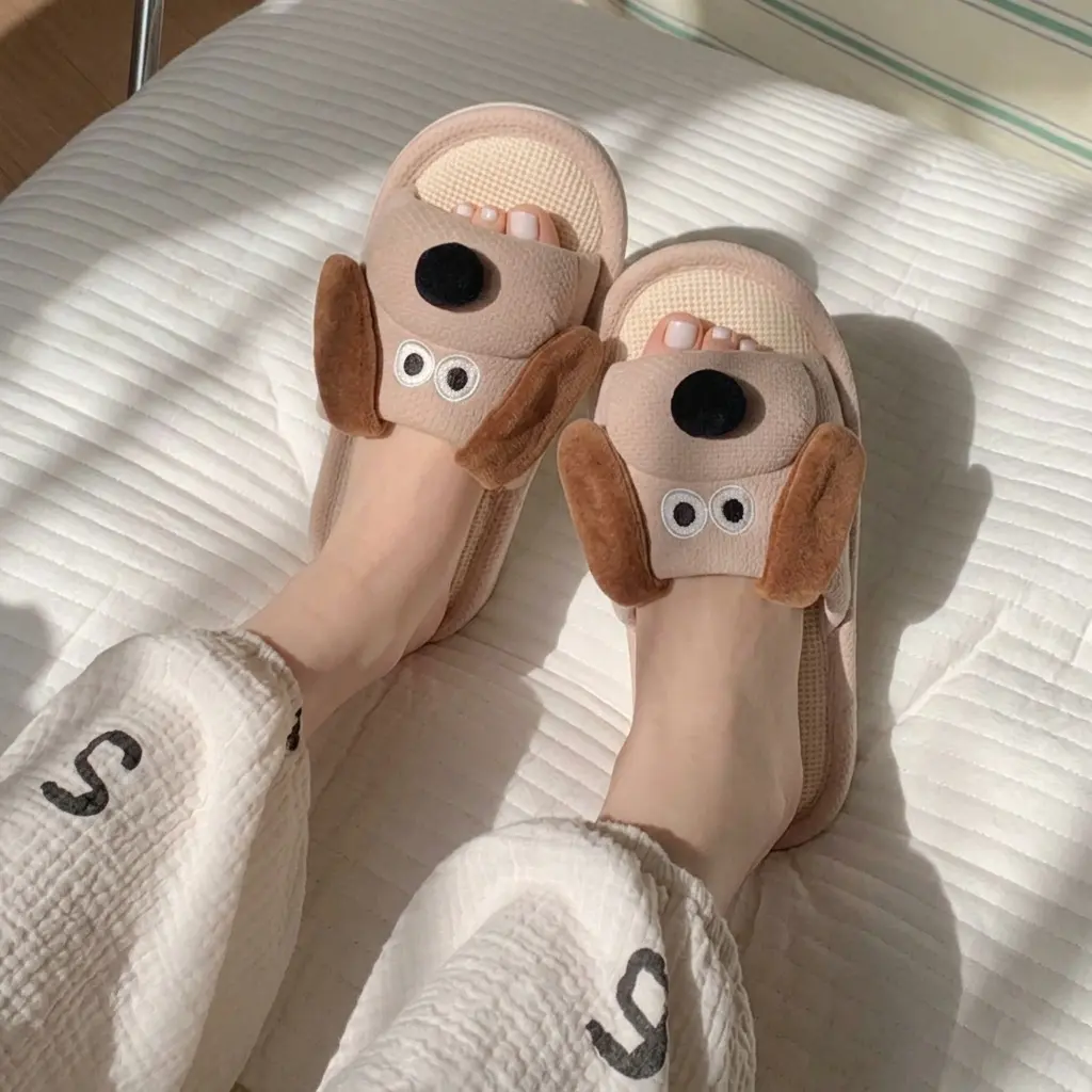 • Cute Design: These slippers feature a charming dog design with big ears and a soft bottom. Perfect for adding a playful touch to your home. 🐶