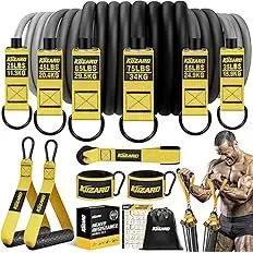 This heavy resistance band set includes 6 bands offering resistance from 25 lbs up to 75 lbs each, allowing you to combine them for a maximum of 300 lbs resistance suitable for all fitness levels.