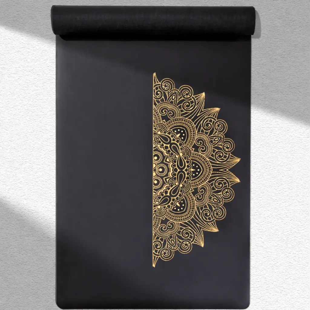 Elevate your practice with this Black Gold Mandala Yoga Mat (24” x 70”), designed for both performance and style. Featuring a luxurious gold mandala pattern on a sleek black background, this mat brings a calm, focused, and premium aesthetic to your yoga, Pilates, or meditation sessions.