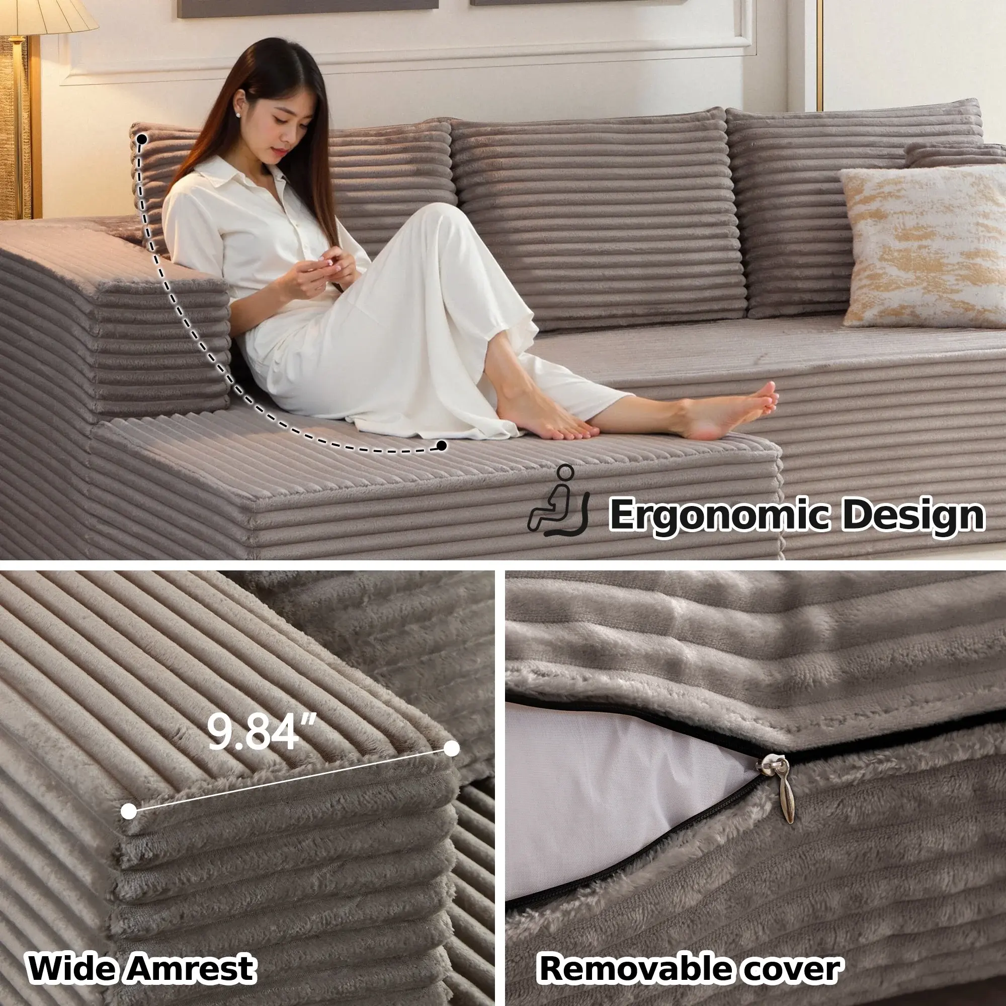 ·Soft Corduroy Fabric: Upgraded wrinkle-resistant corduroy with vertical velvet texture. Skin-friendly, wear-resistant, and adds warm elegance to small spaces and large rooms alike