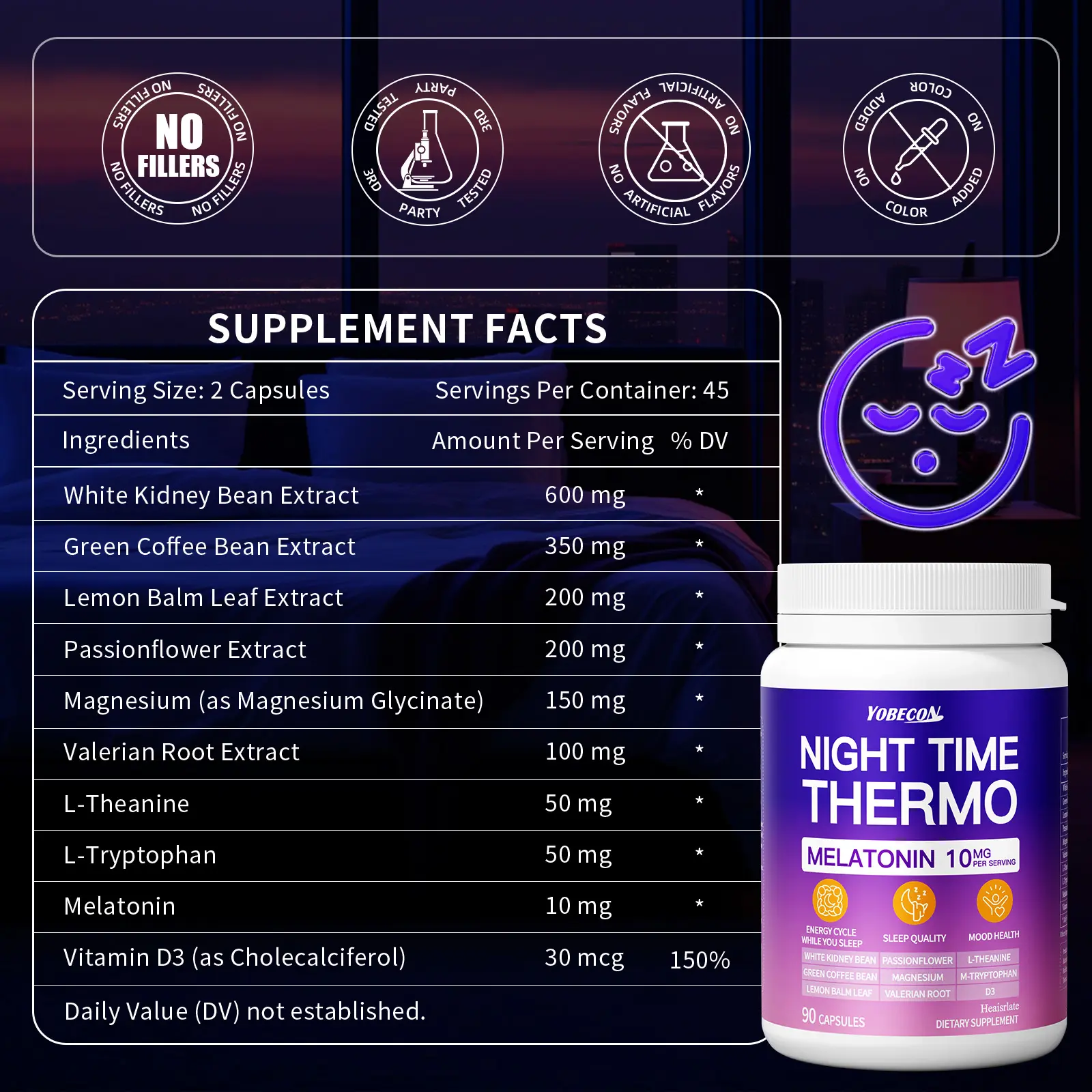 Nighttime Heat Energy Capsules for Sleep Support | Melatonin, Magnesium, Vitamin D3, L-Theanine, Red Bean, Green Coffee Bean, Passionfruit & Lemon Balm